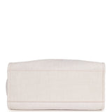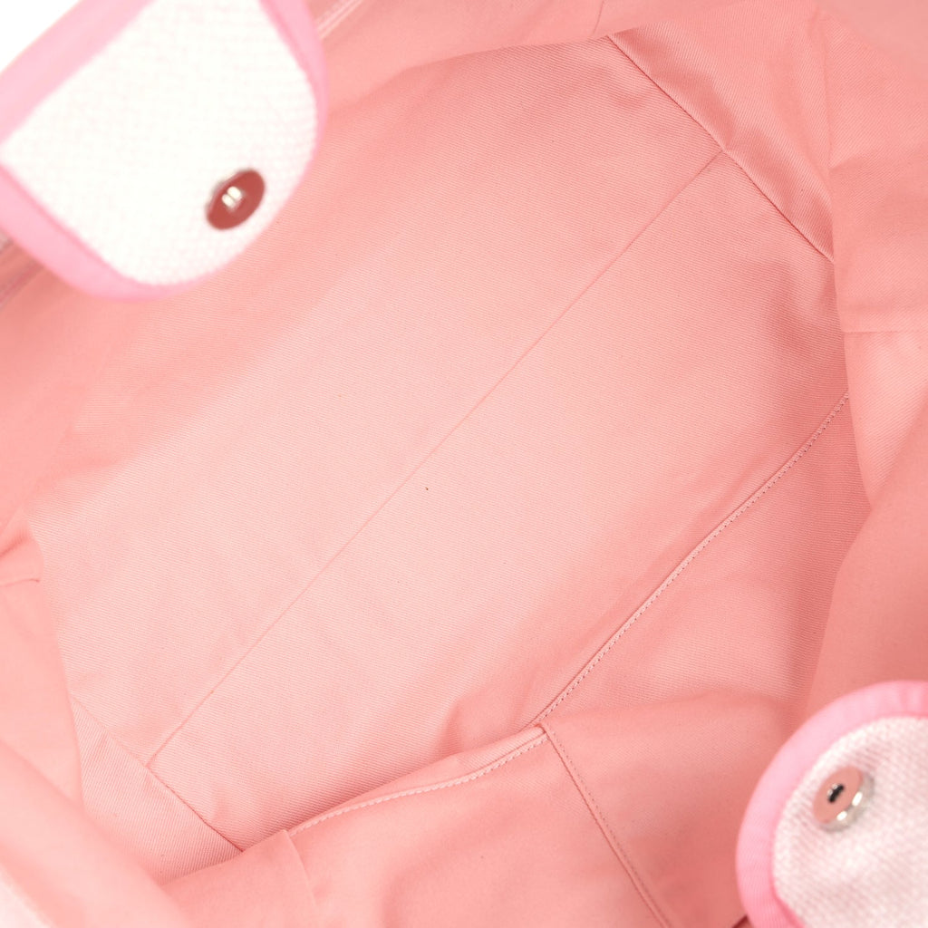 Pre-owned Chanel Medium Deauville Shopping Tote Light Pink Raffia and Canvas Silver Hardware