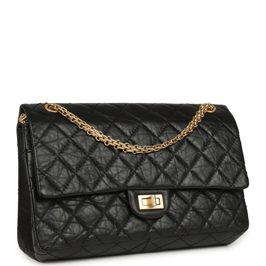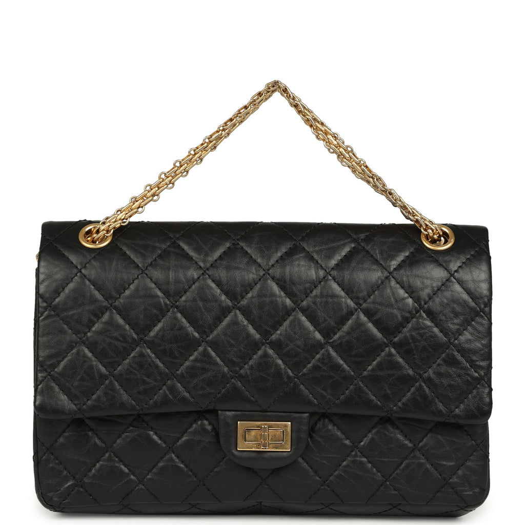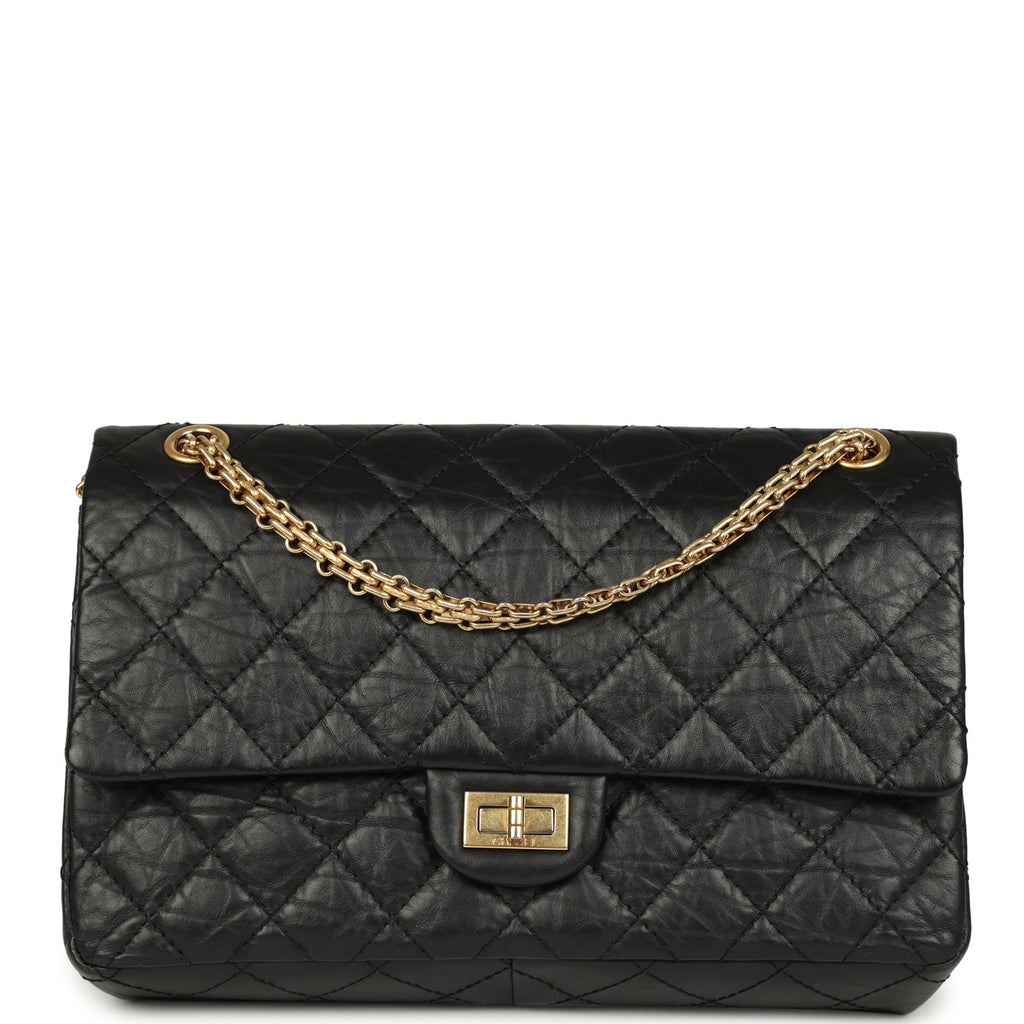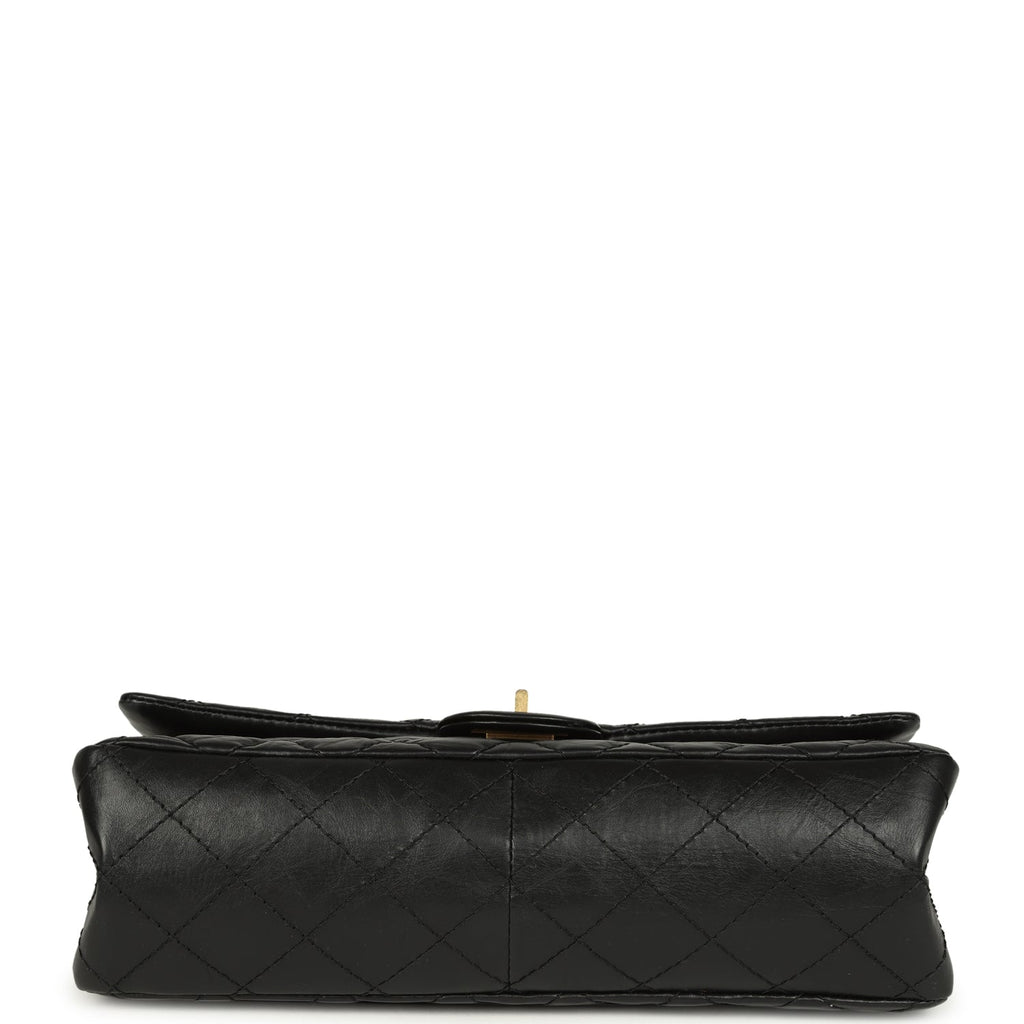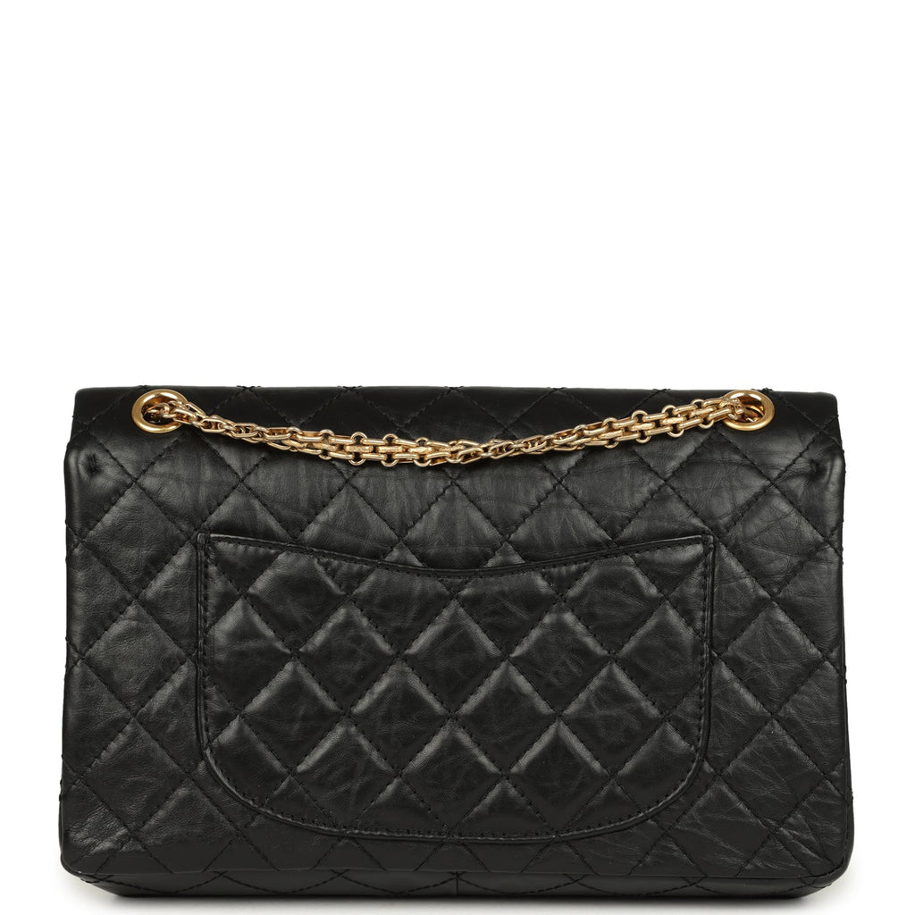 Pre-owned Chanel Medium Reissue 225 2.55 Double Flap Bag Black Aged Calfskin Antique Gold Hardware