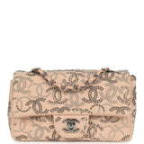 Pre-owned Chanel Mini CC Studded Rectangular Flap Bag Light Pink Canvas Ruthenium Hardware