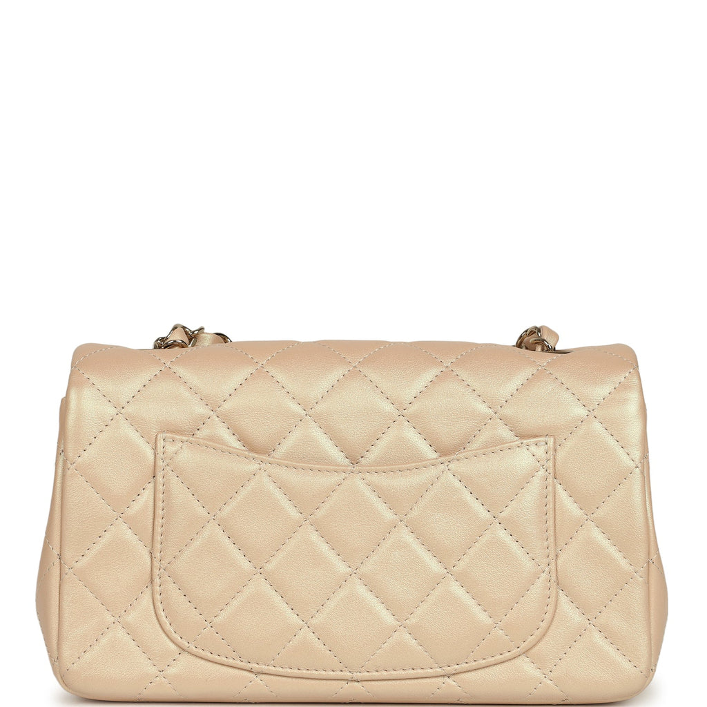 Pre-owned Chanel Mini Classic Rectangular Flap Bag Light Beige Iridescent Calfskin Light Gold Hardware