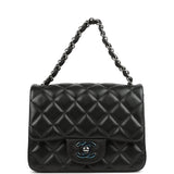 Pre-owned Chanel Mini Classic Square Flap Bag Black Lambskin Ruthenium Hardware