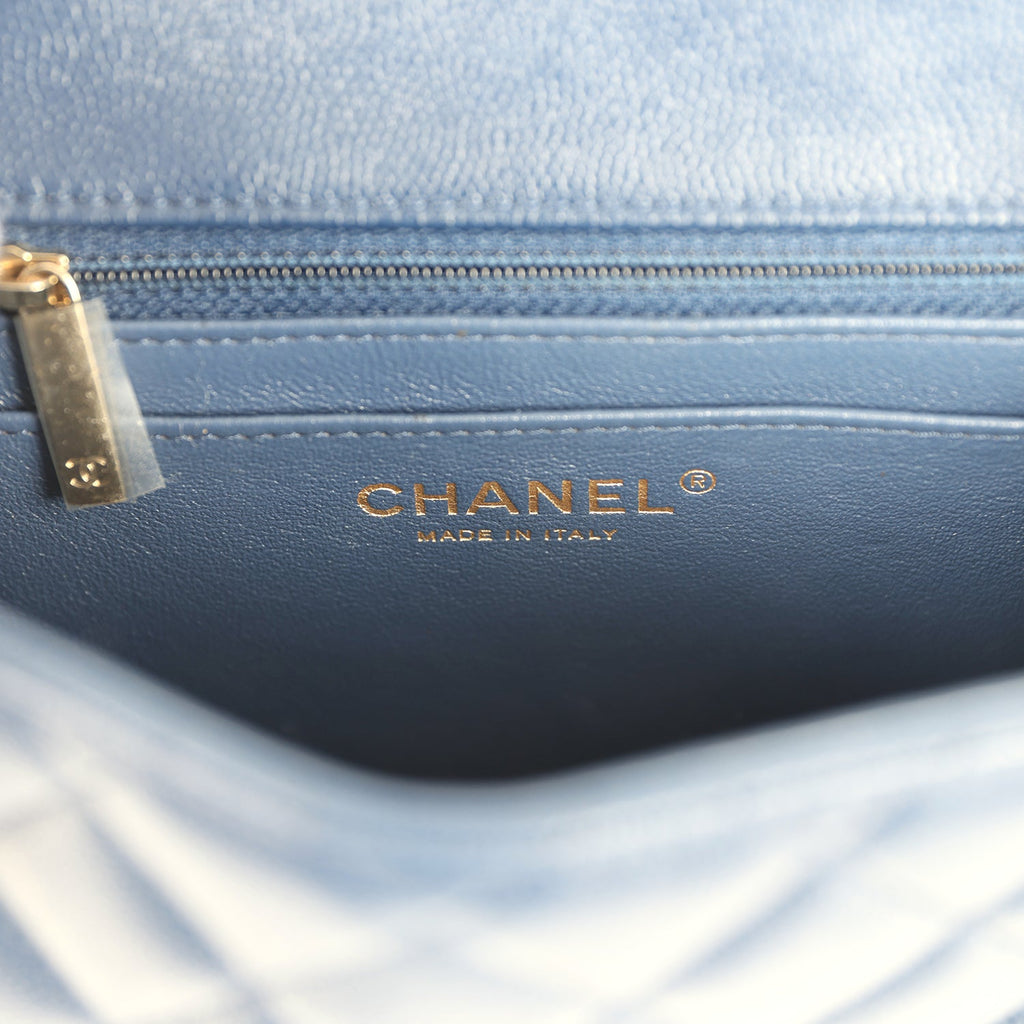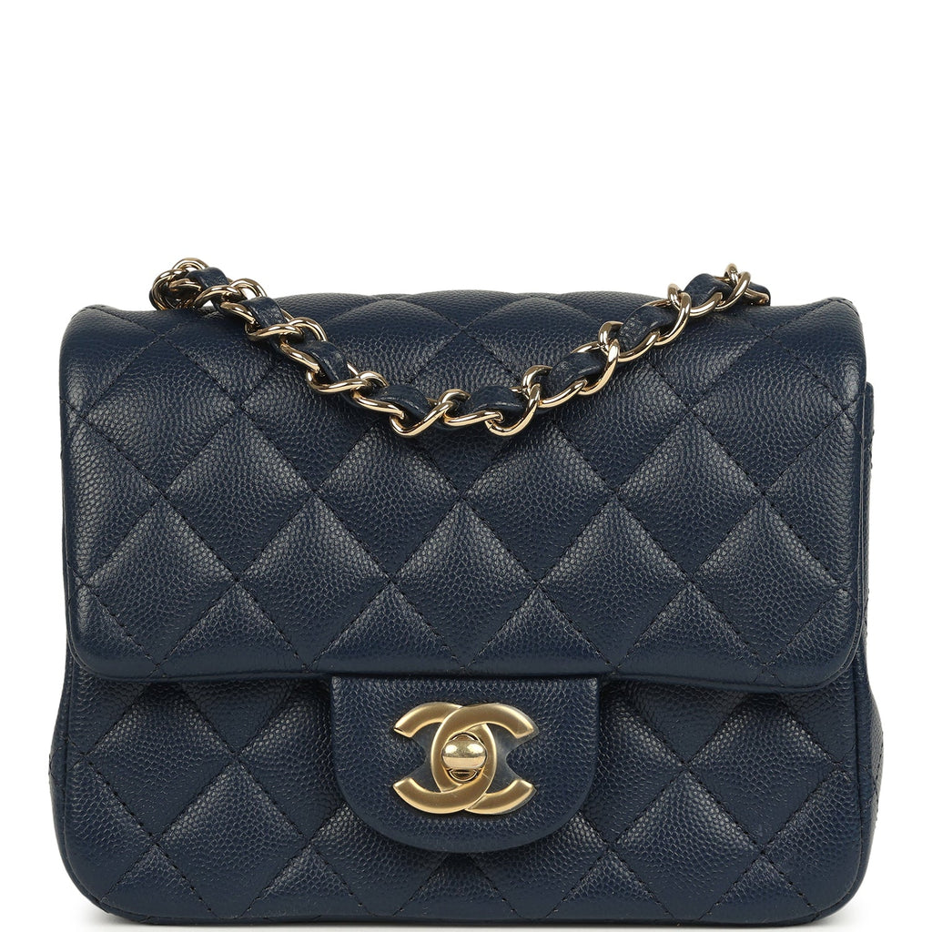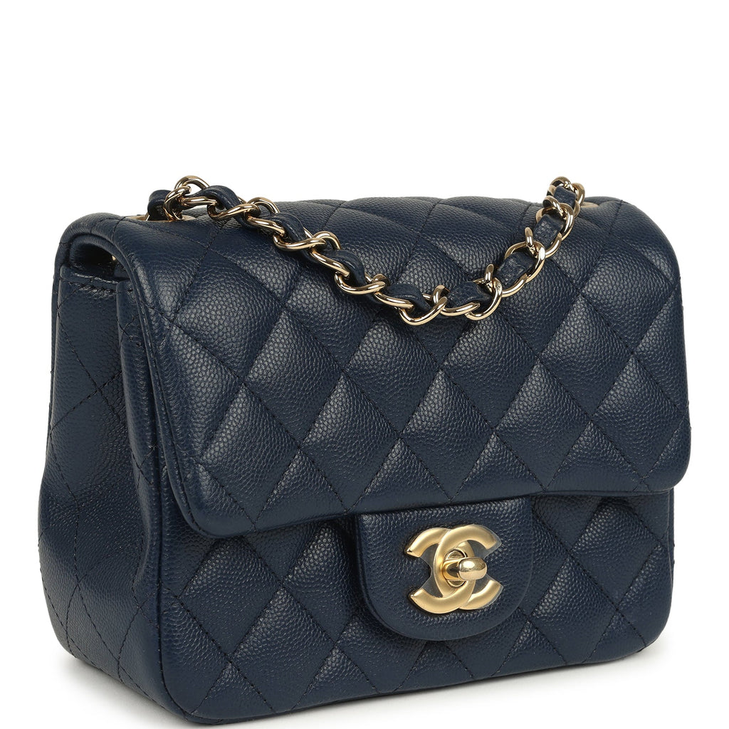 Pre-owned Chanel Mini Classic Square Flap Bag Navy Blue Caviar Gold Hardware
