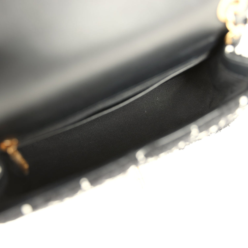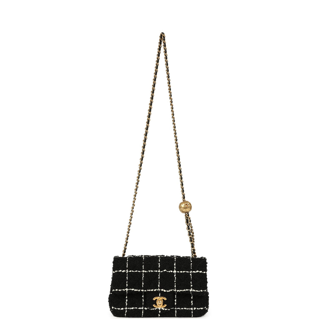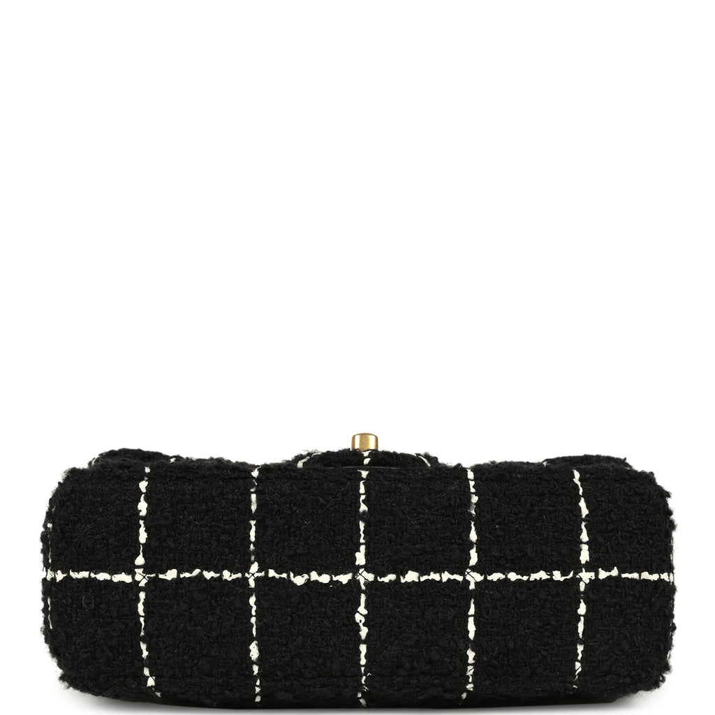 Pre-owned Chanel Mini Pearl Crush Square Flap Bag White and Black Tweed Antique Gold Hardware