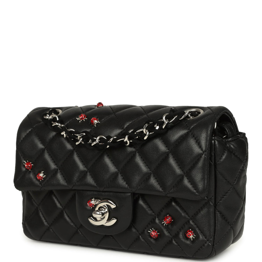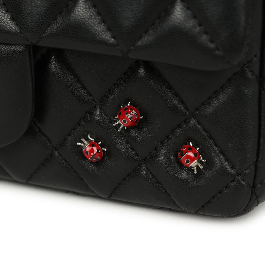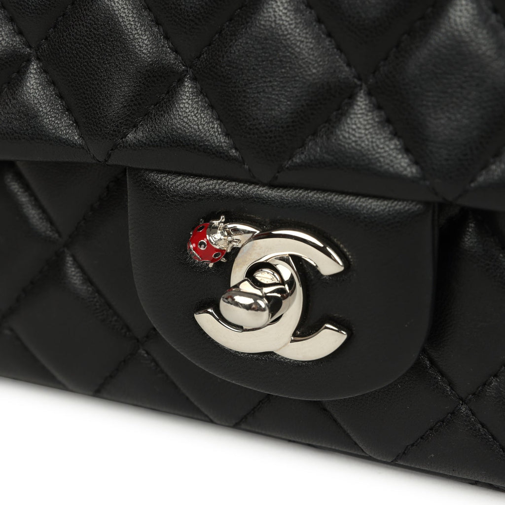 Pre-owned Chanel Mini Rectangular Lady Bug Flap Bag Black Lambskin Silver Hardware