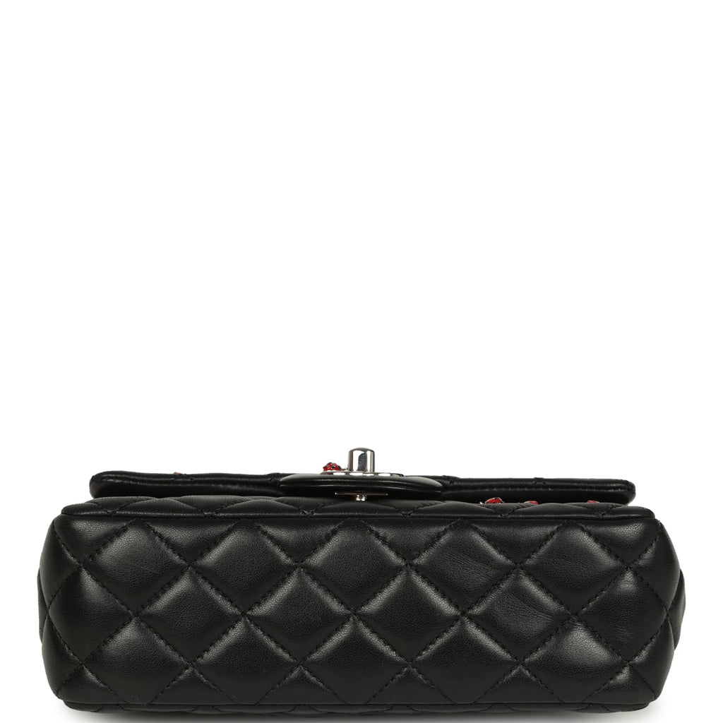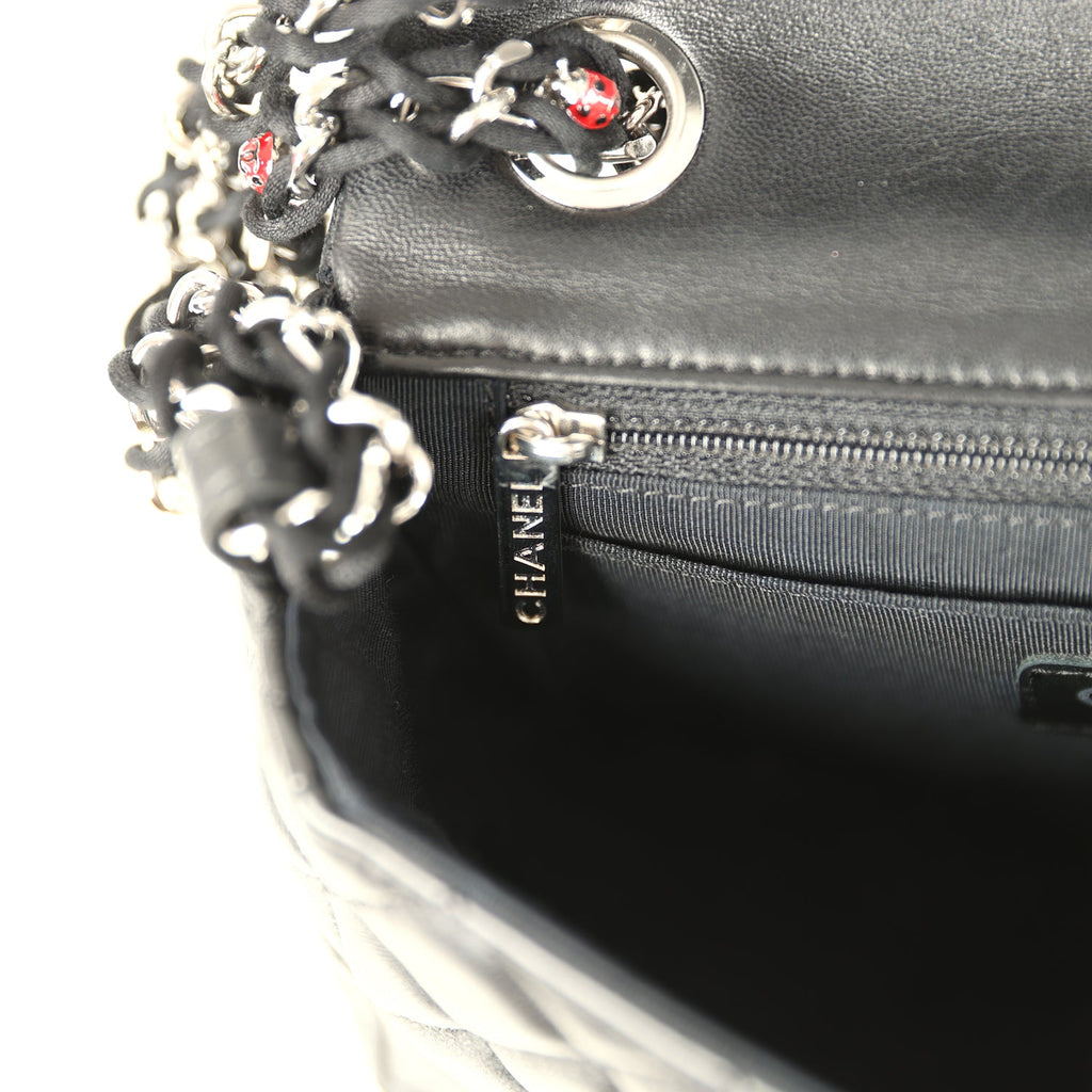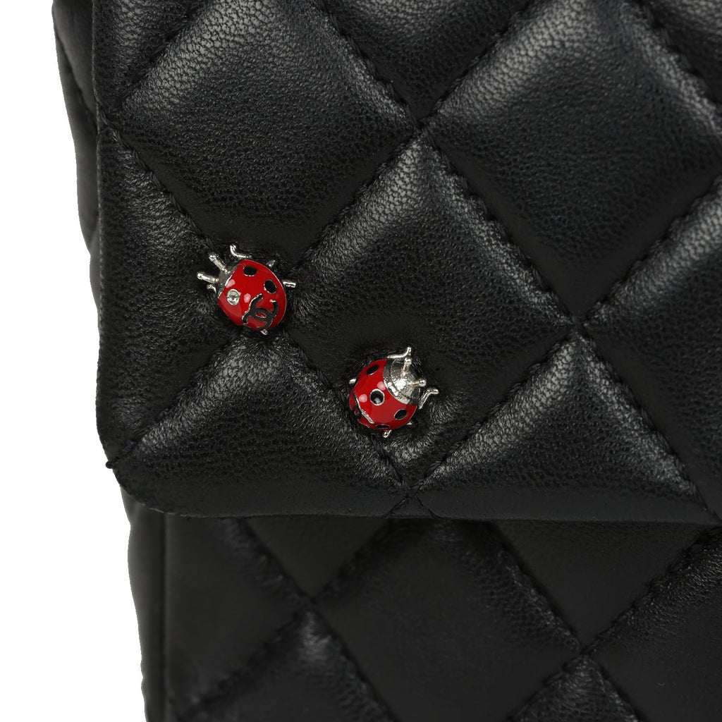 Pre-owned Chanel Mini Rectangular Lady Bug Flap Bag Black Lambskin Silver Hardware