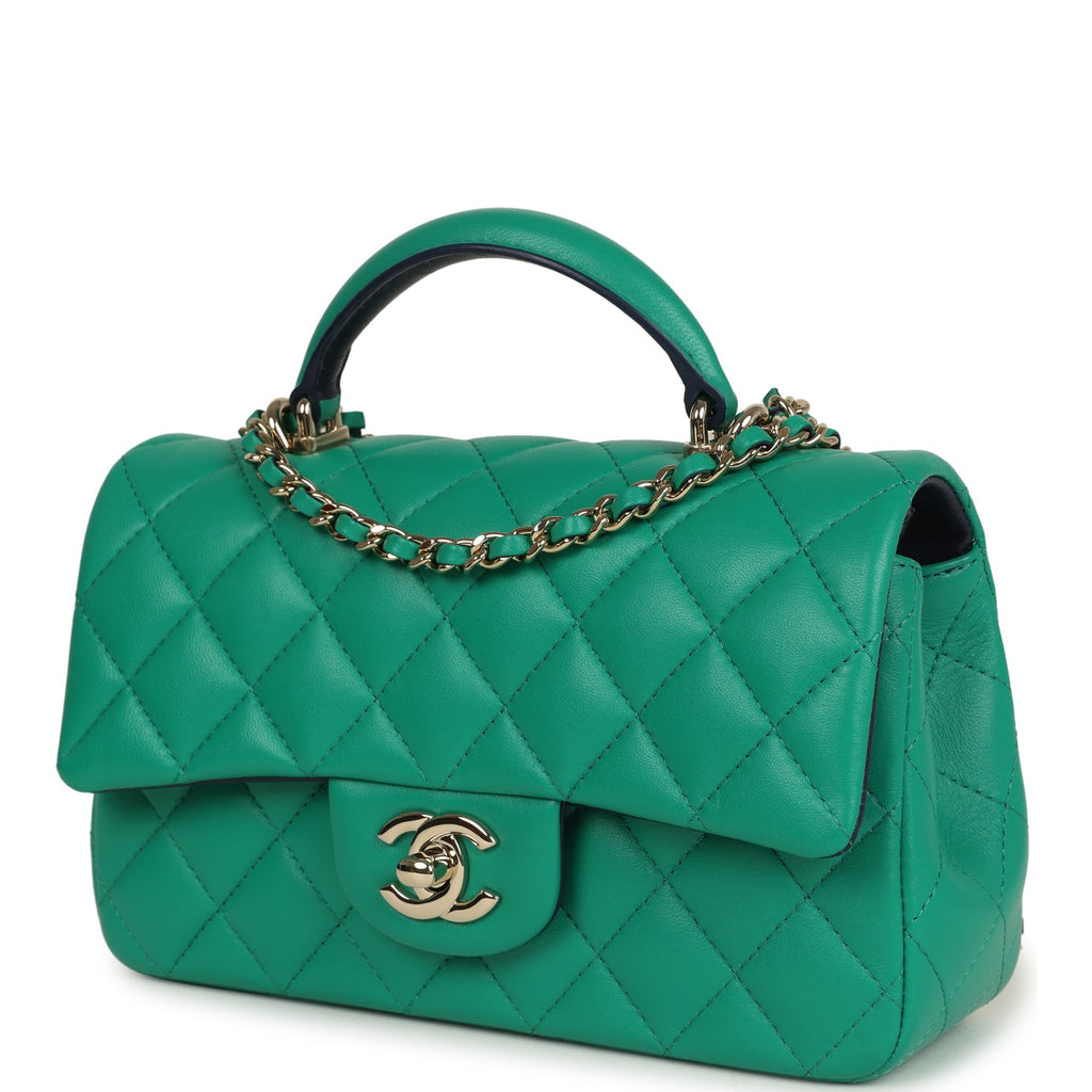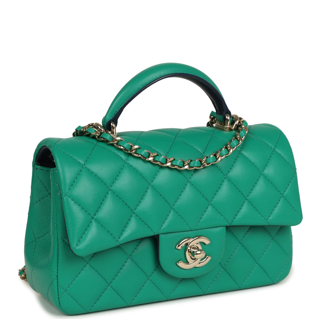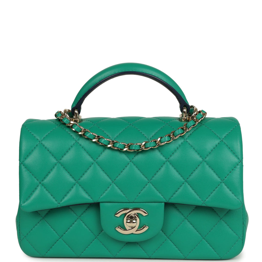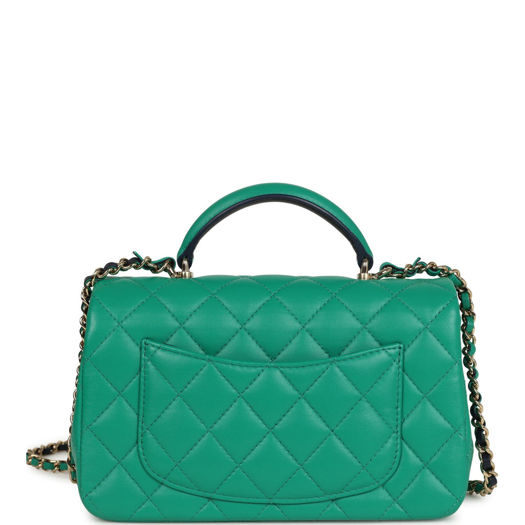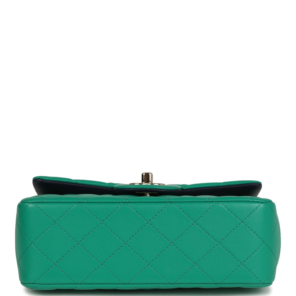 Pre-owned Chanel Classic Mini Rectangular Top Handle Flap Bag Green/Navy Blue Lambskin Light Gold Hardware