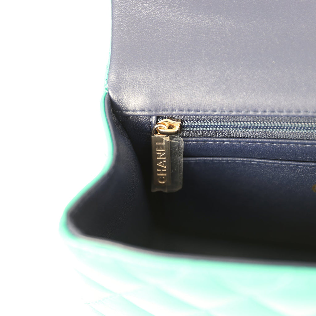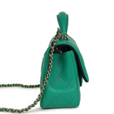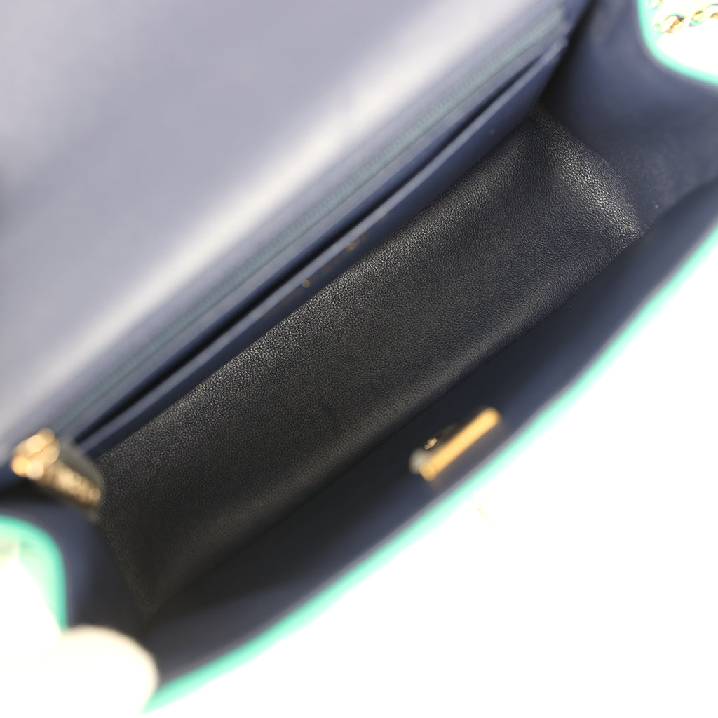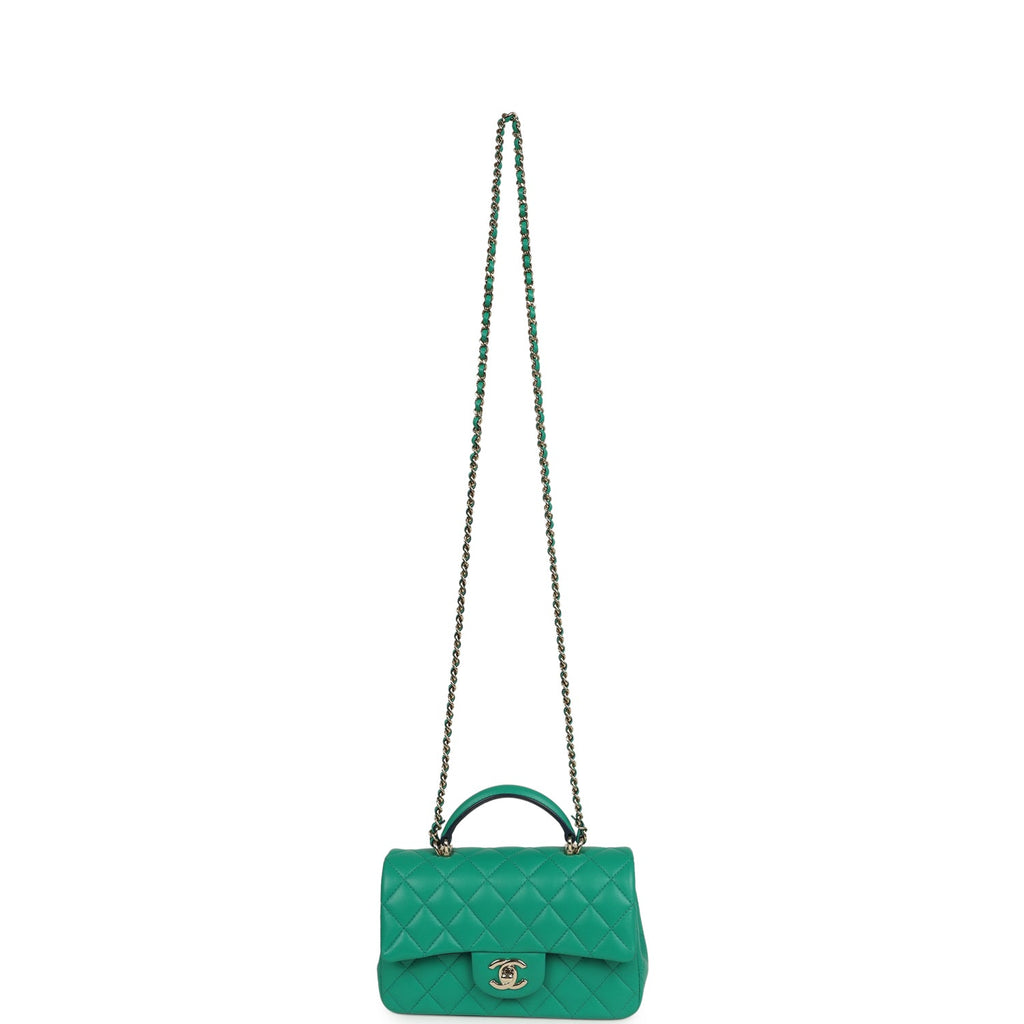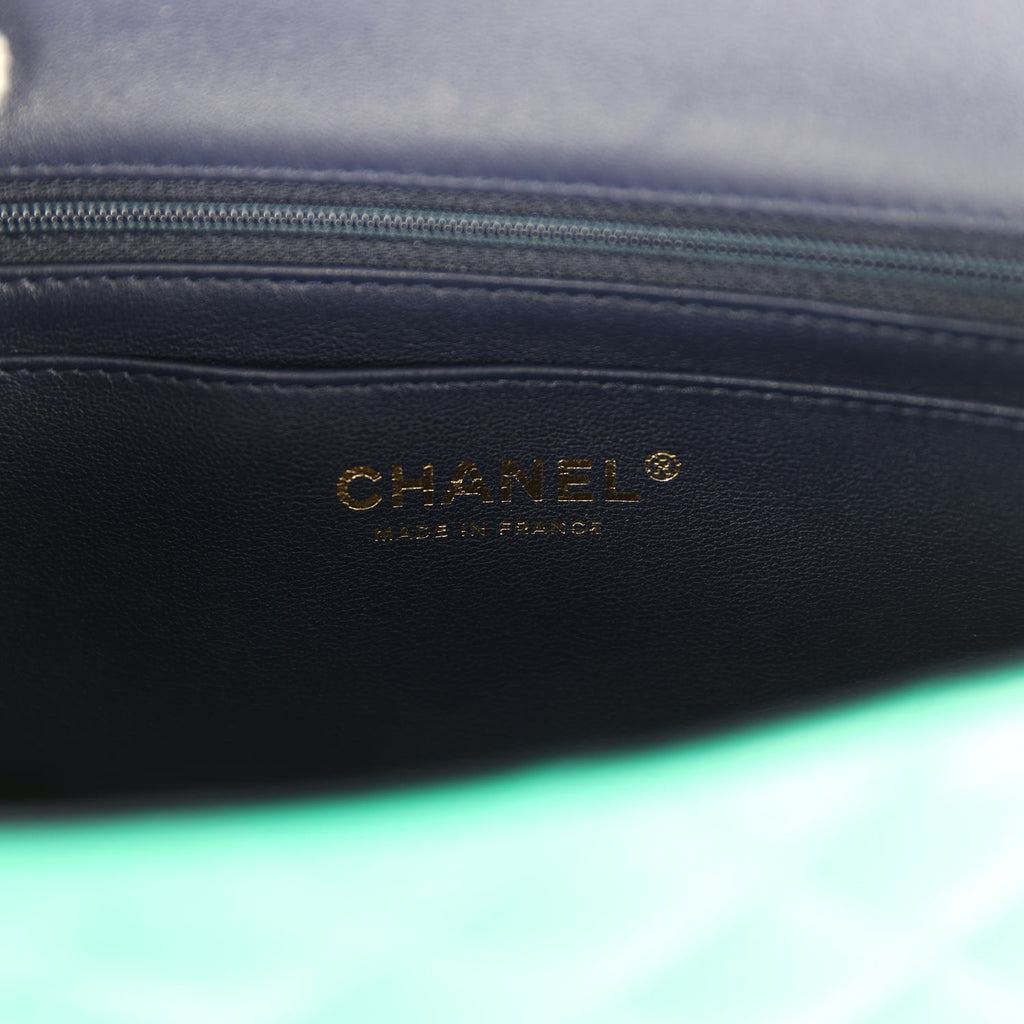 Pre-owned Chanel Classic Mini Rectangular Top Handle Flap Bag Green/Navy Blue Lambskin Light Gold Hardware