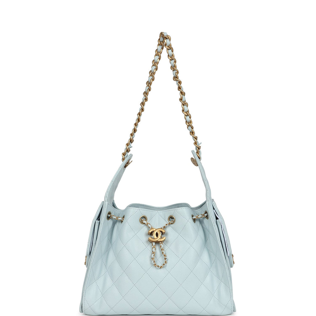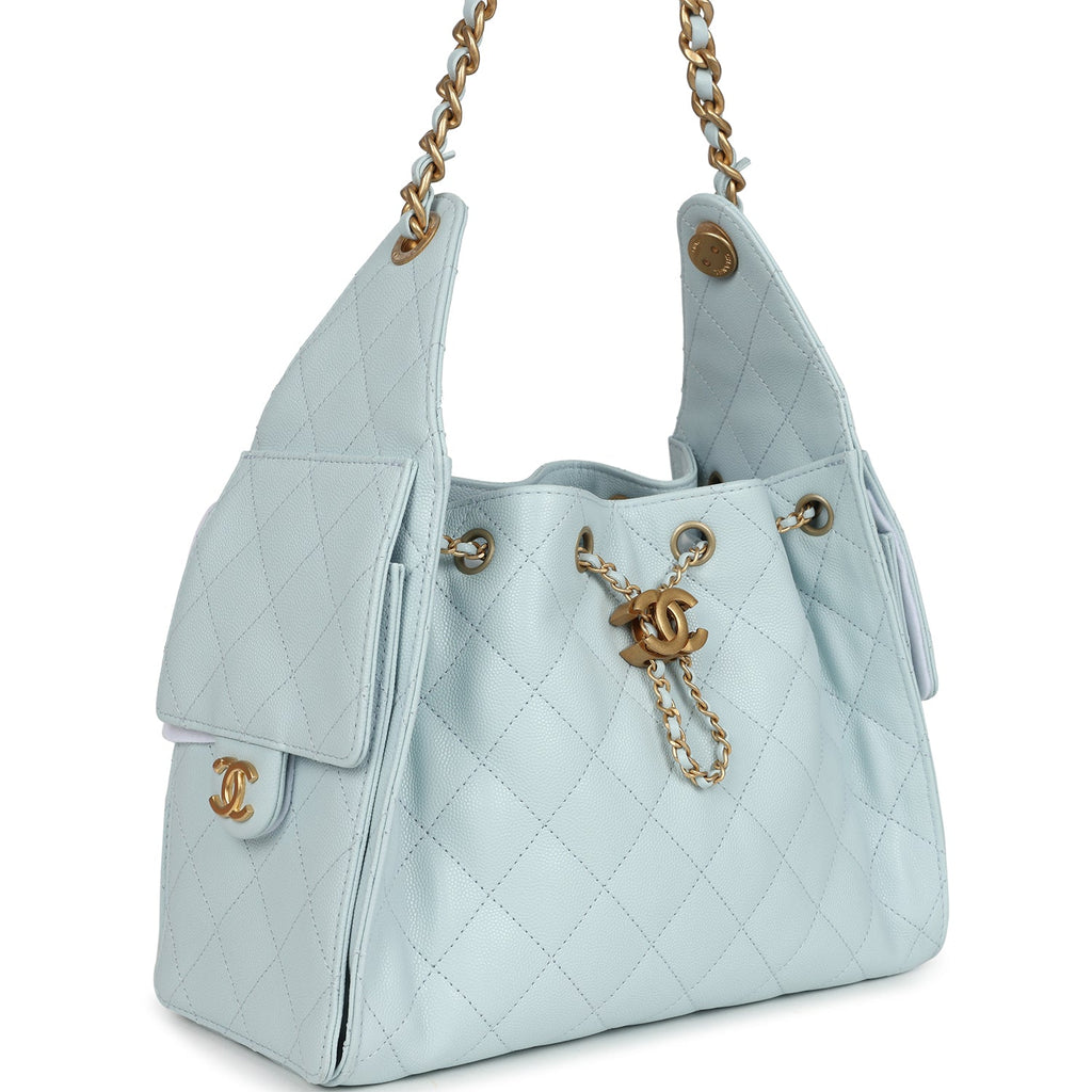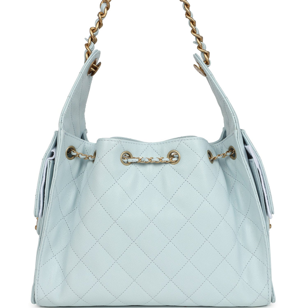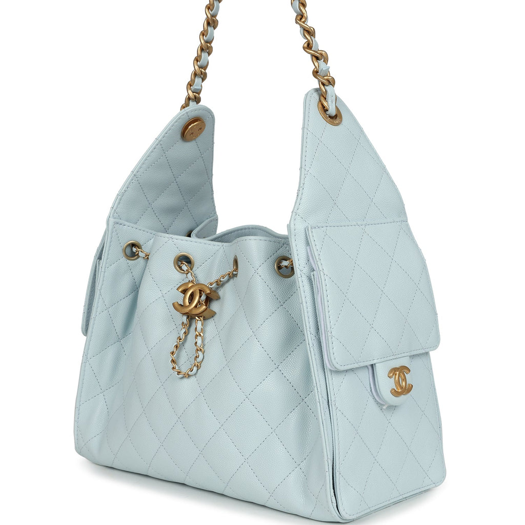 Pre-owned Chanel Small 25 Hobo Bag Light Blue Caviar Antique Gold Hardware