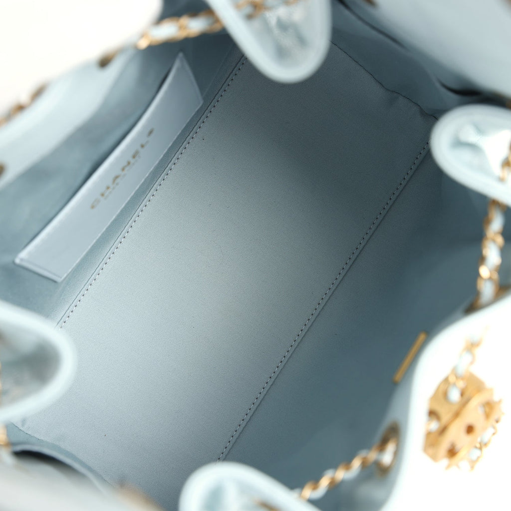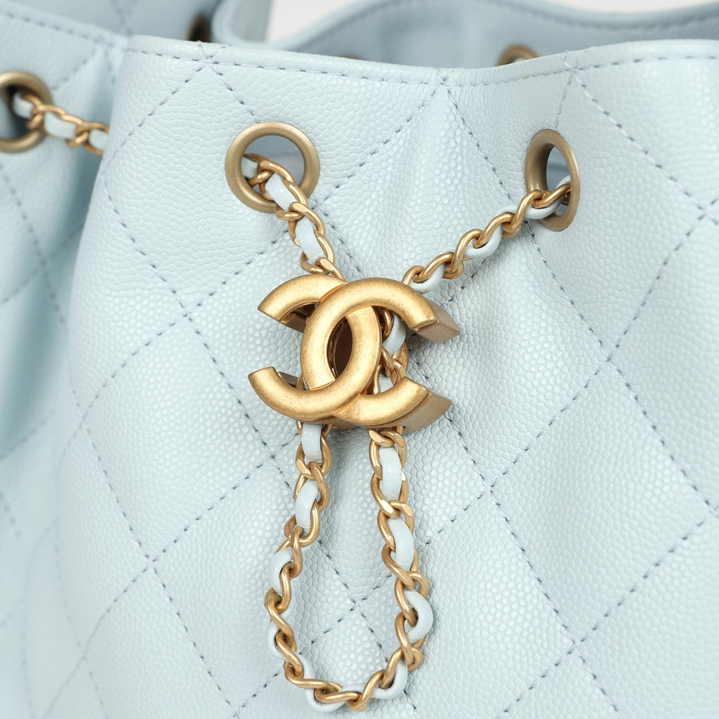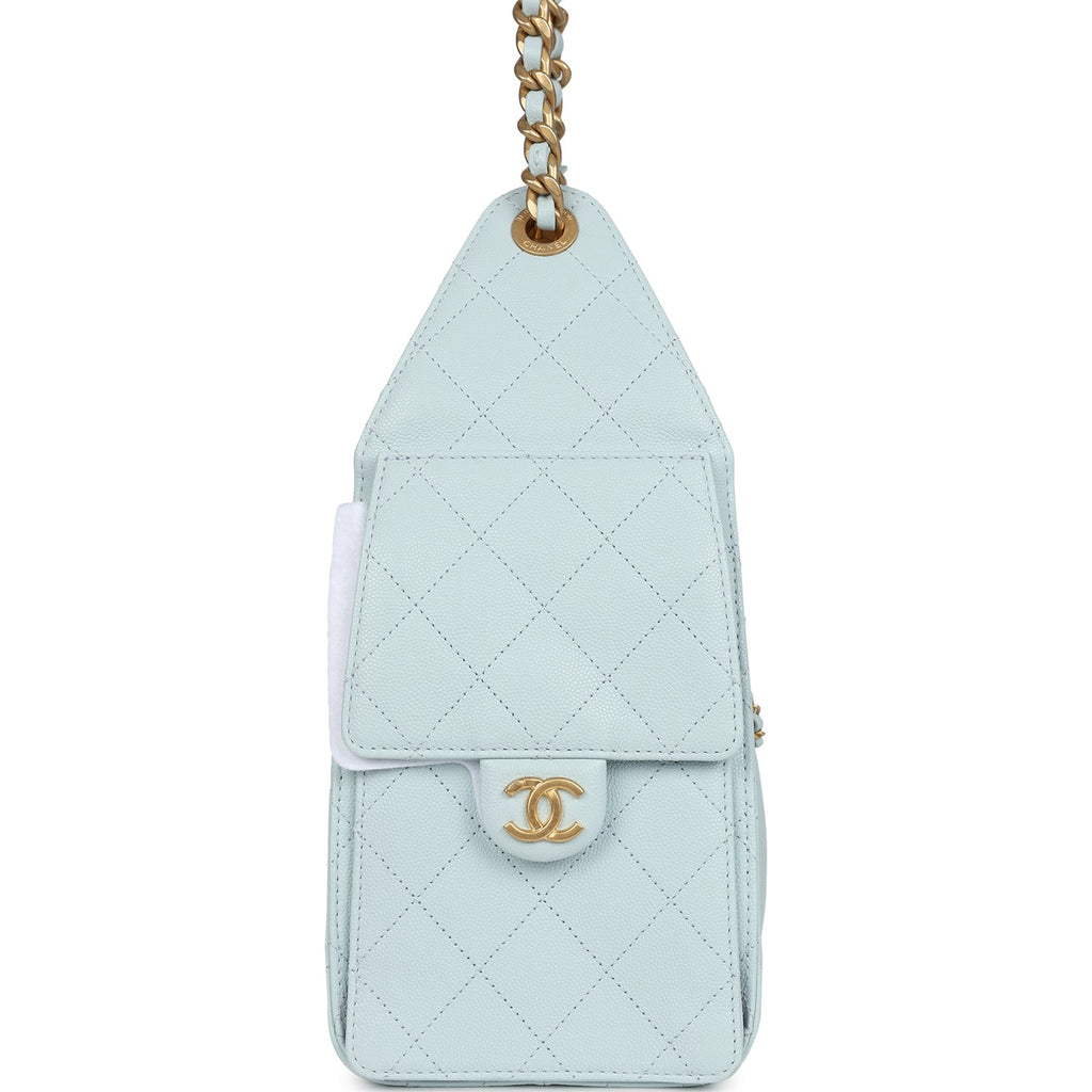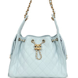 Pre-owned Chanel Small 25 Hobo Bag Light Blue Caviar Antique Gold Hardware