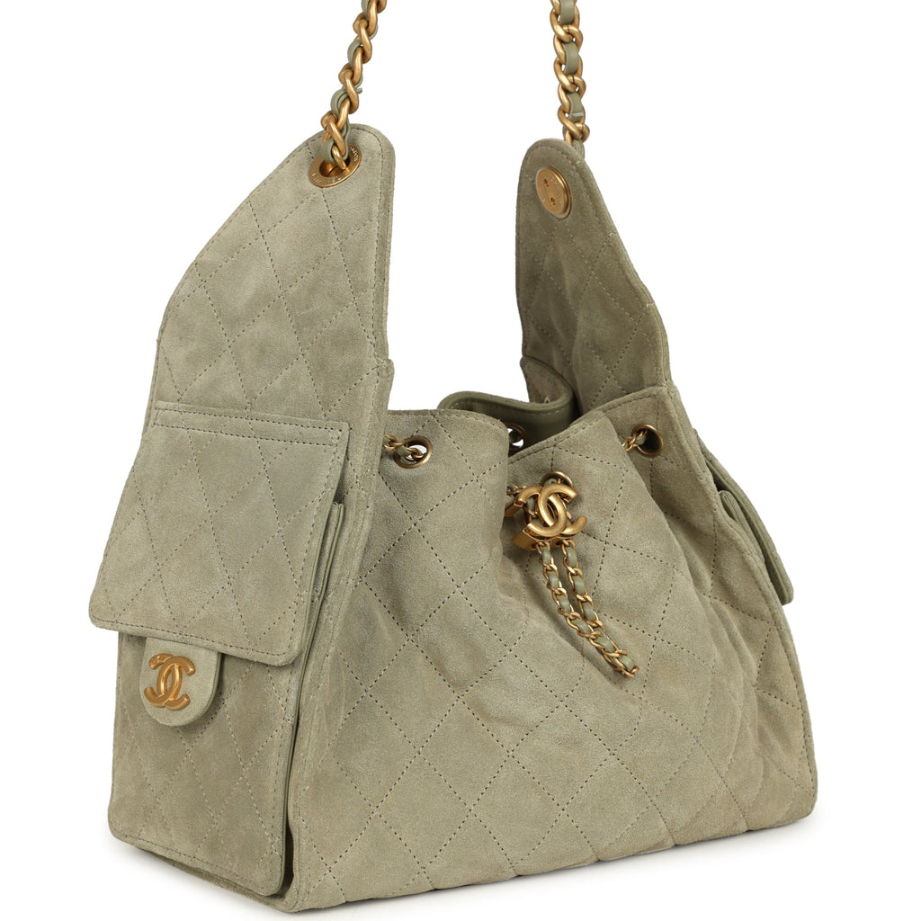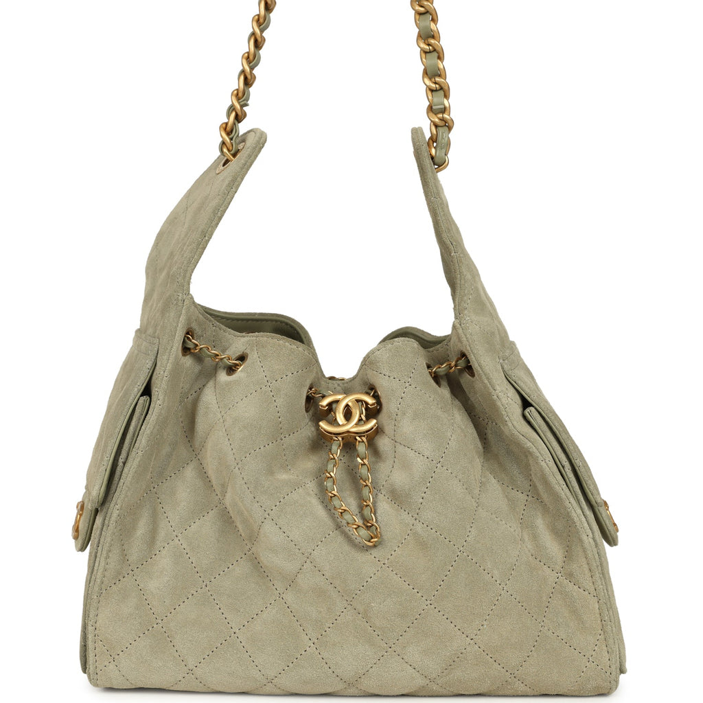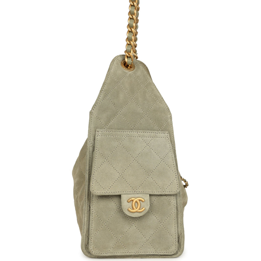 Pre-owned Chanel Small 25 Hobo Bag Olive Green Suede Antique Gold Hardware