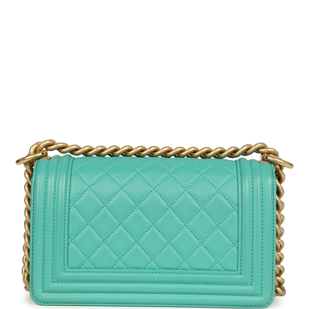 Pre-owned Chanel Small Boy Bag Turquoise Lambskin Antique Gold Hardware