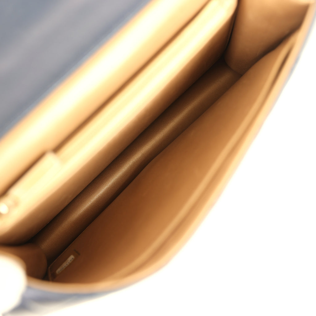 Pre-owned Chanel Small Chic Pearls Flap Bag Navy Calfskin Antique Gold Hardware