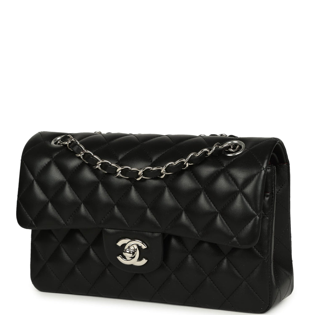 Pre-owned Chanel Small Classic Double Flap Bag Black Lambskin Silver Hardware