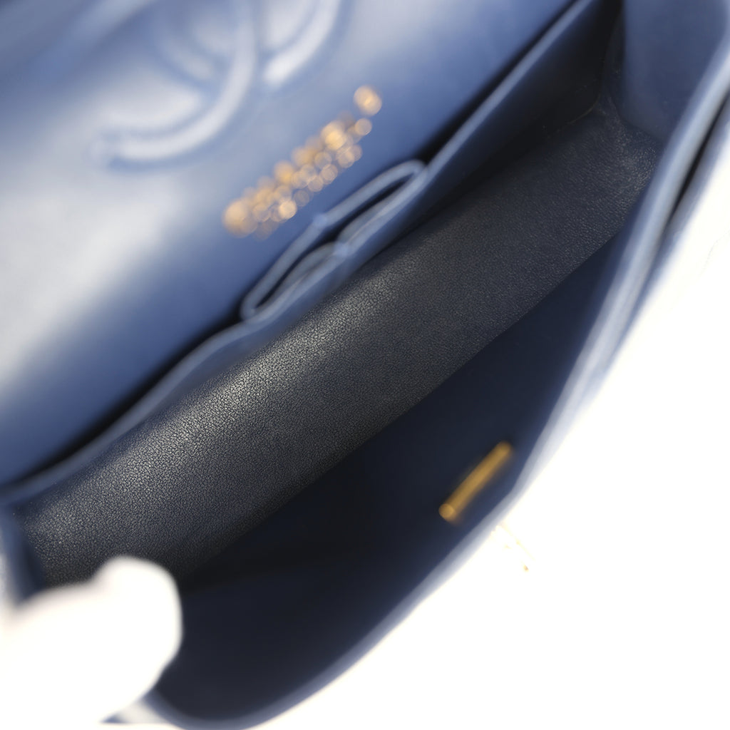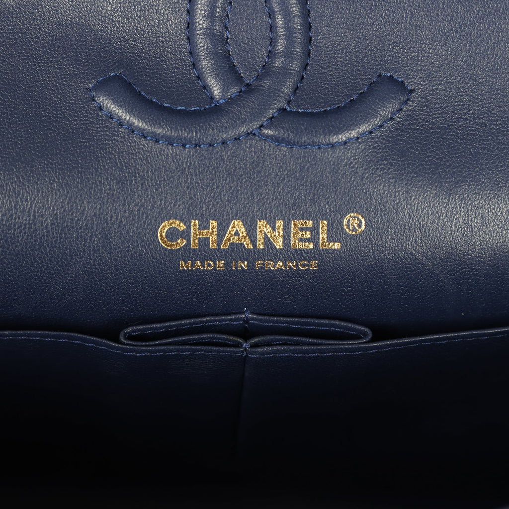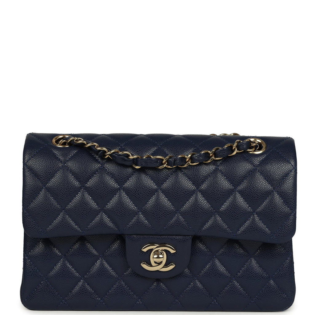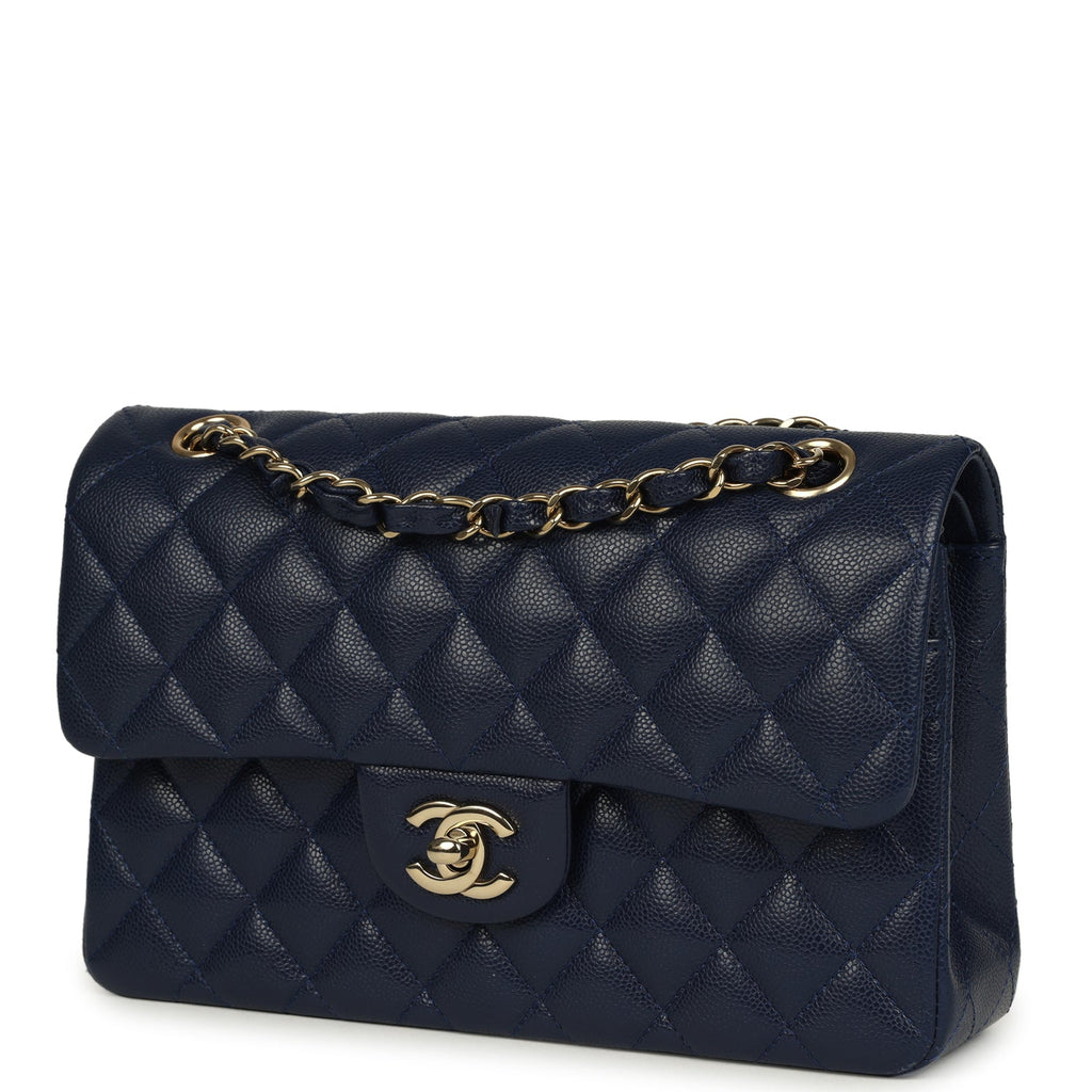Pre-owned Chanel Small Classic Double Flap Bag Navy Blue Caviar Gold Hardware