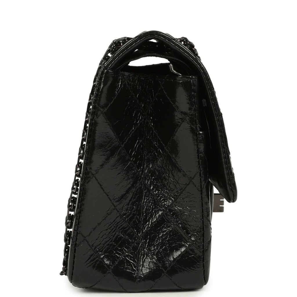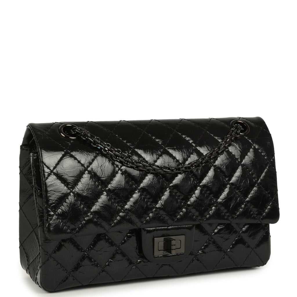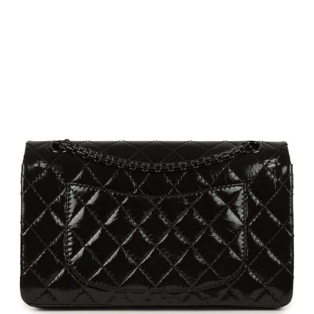 Pre-owned Chanel Small Reissue 225 2.55 Double Flap Bag So Black Shiny Crumpled Calfskin Black Hardware