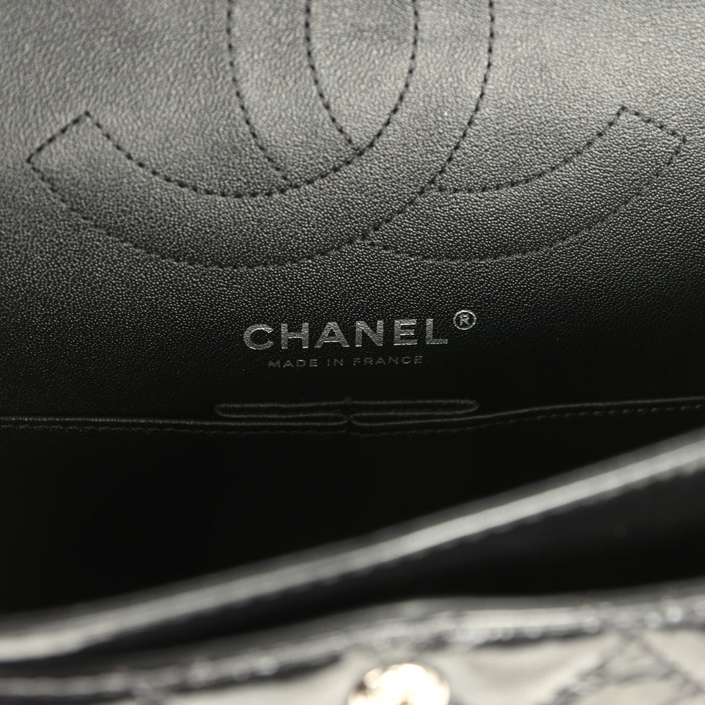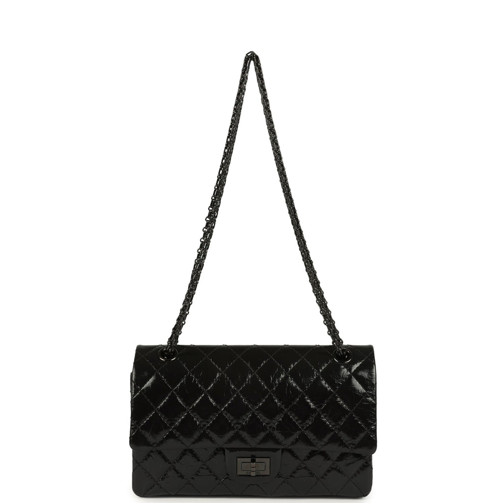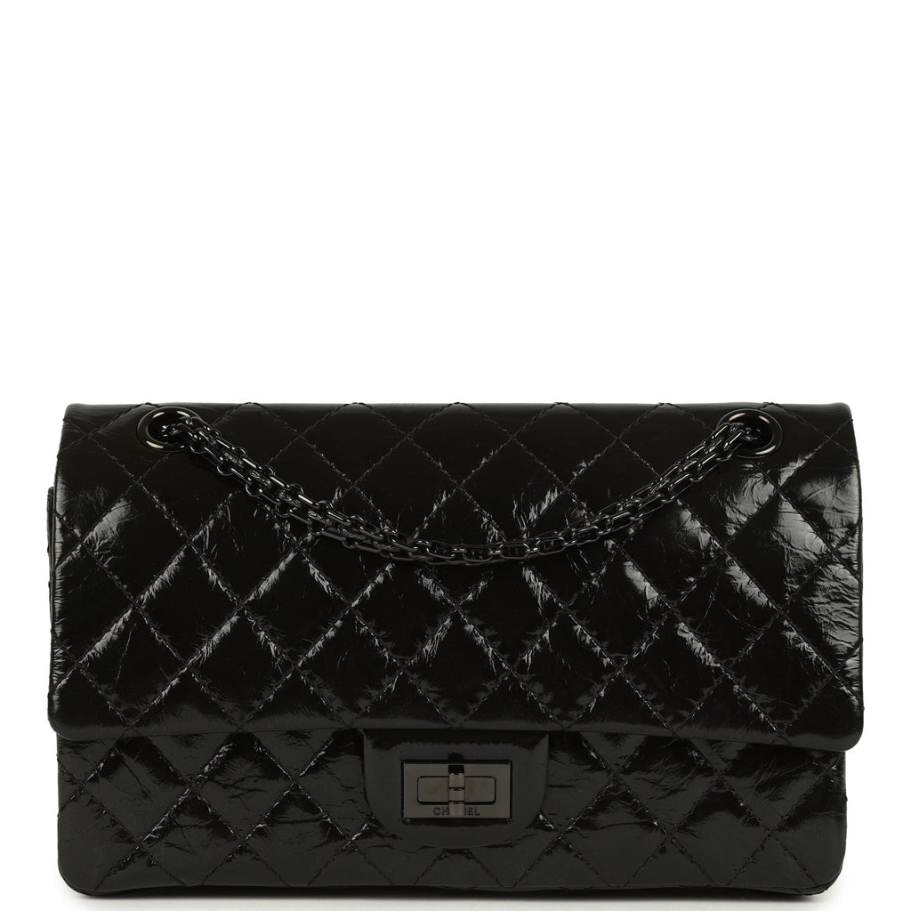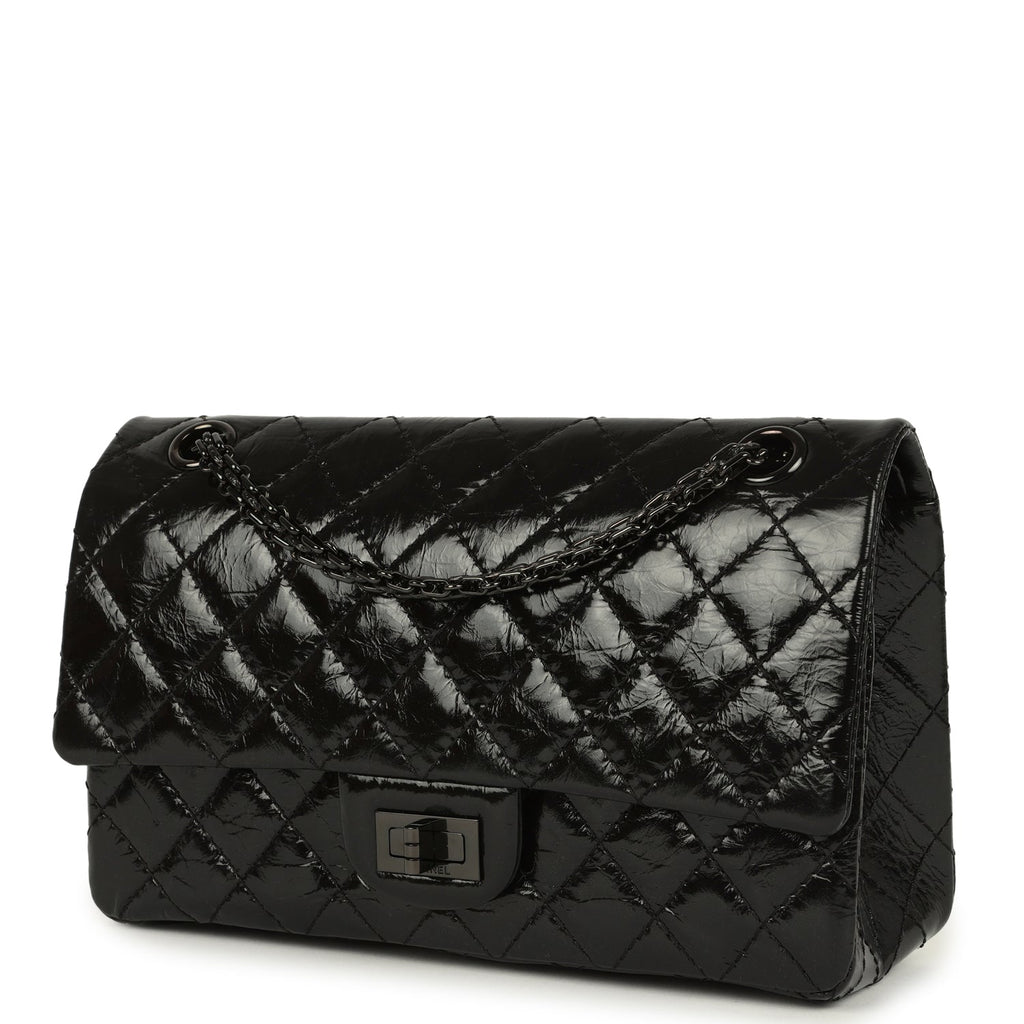 Pre-owned Chanel Small Reissue 225 2.55 Double Flap Bag So Black Shiny Crumpled Calfskin Black Hardware