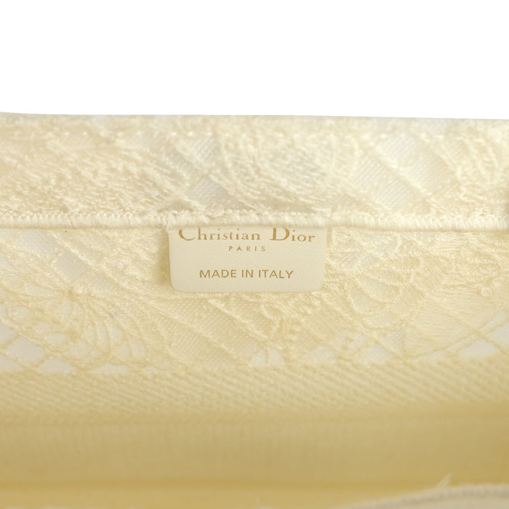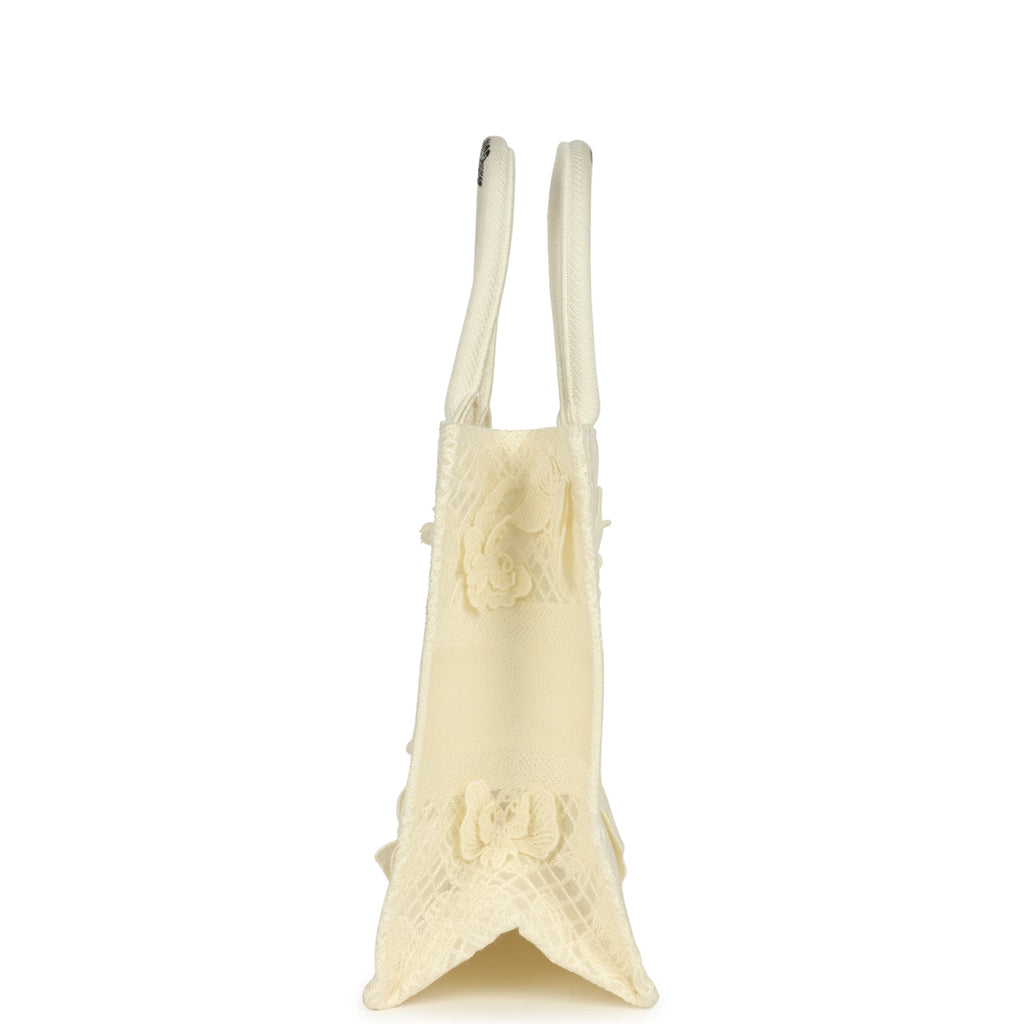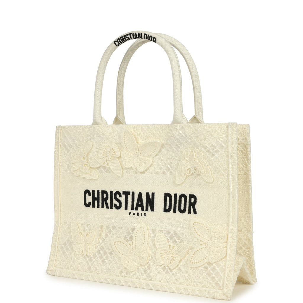 Pre-owned Christian Dior "3D Macrame D-Lace Butterfly" Medium Book Tote Ivory and Black Embroidered Canvas
