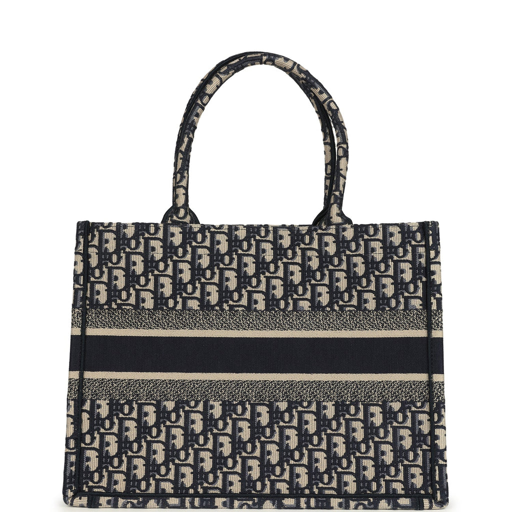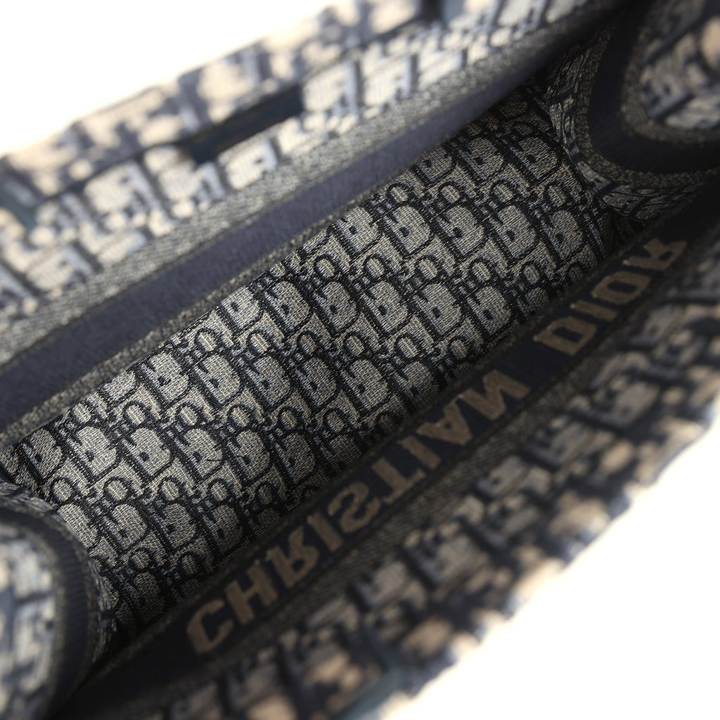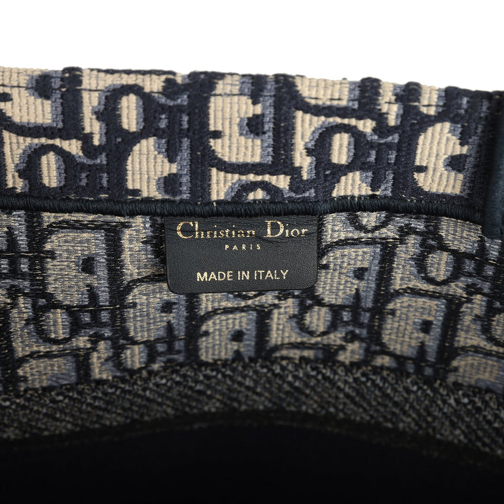 Pre-owned Christian Dior "Oblique" Medium Book Tote Ecru and Navy Blue Embroidered Canvas