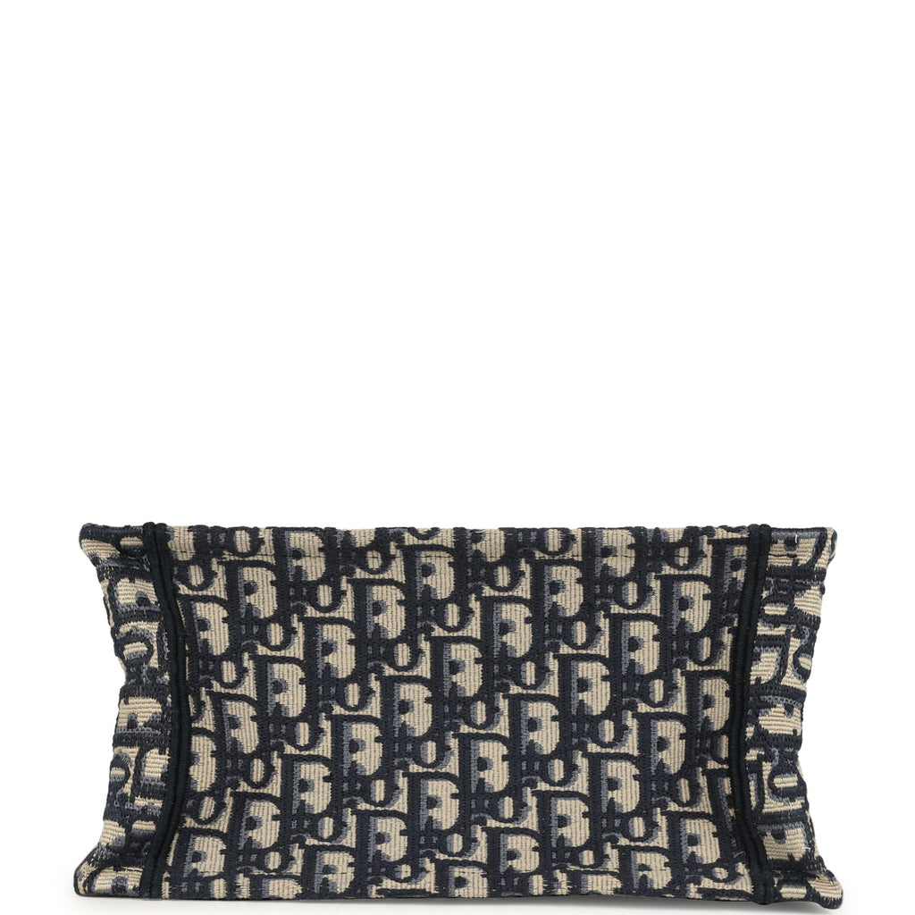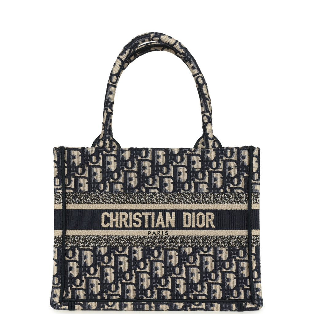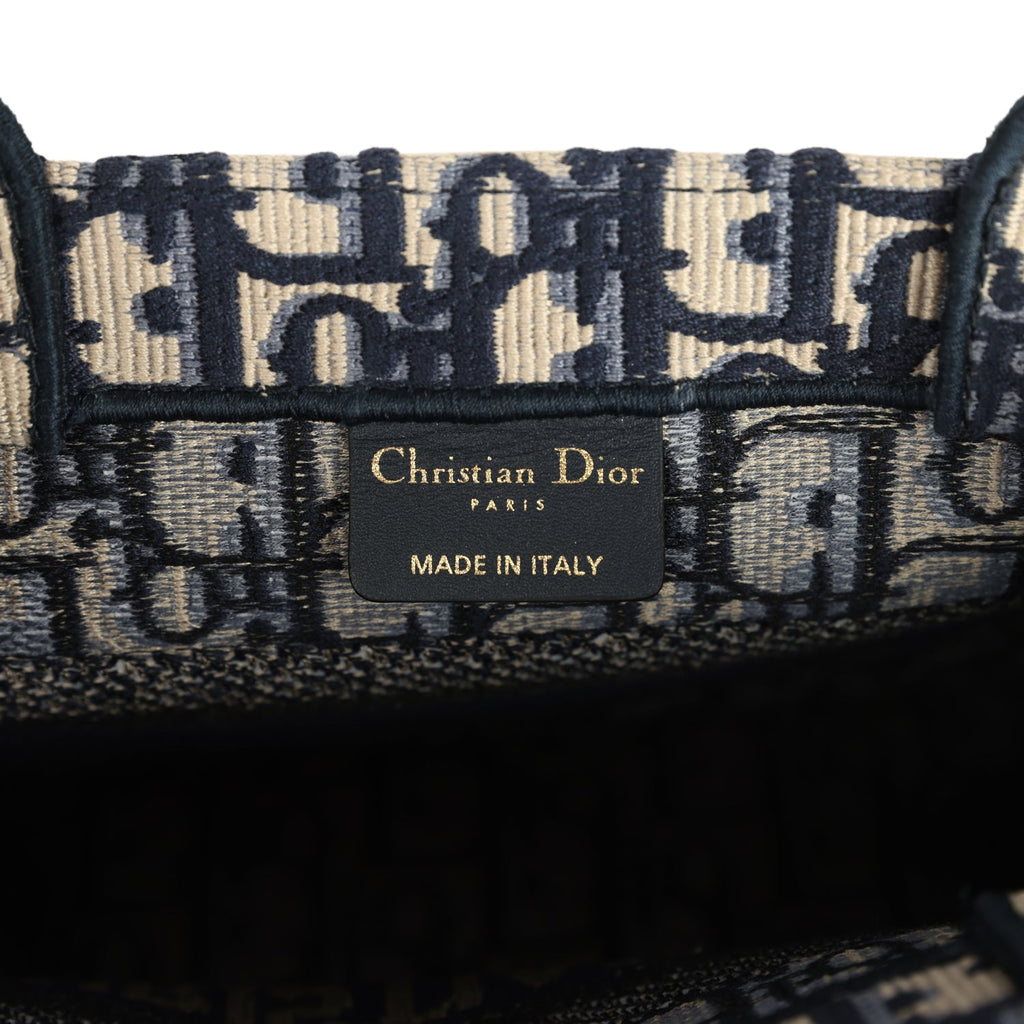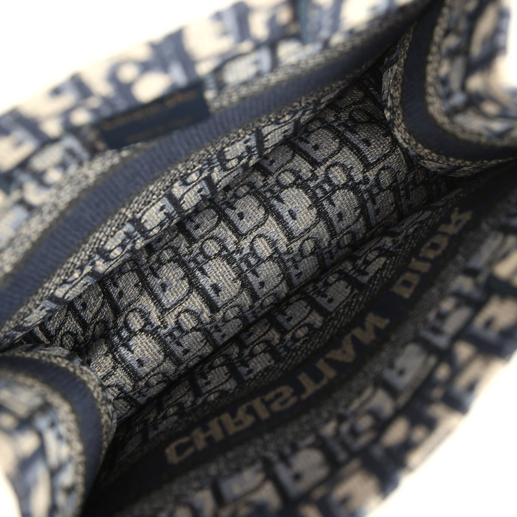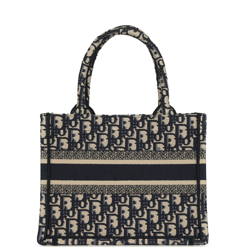 Pre-owned Christian Dior "Oblique" Small Book Tote Ecru and Navy Blue Embroidered Canvas