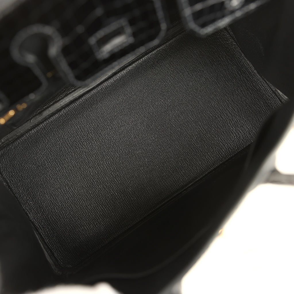 Pre-owned Hermes Birkin 25 Black Shiny Porosus Crocodile Gold Hardware