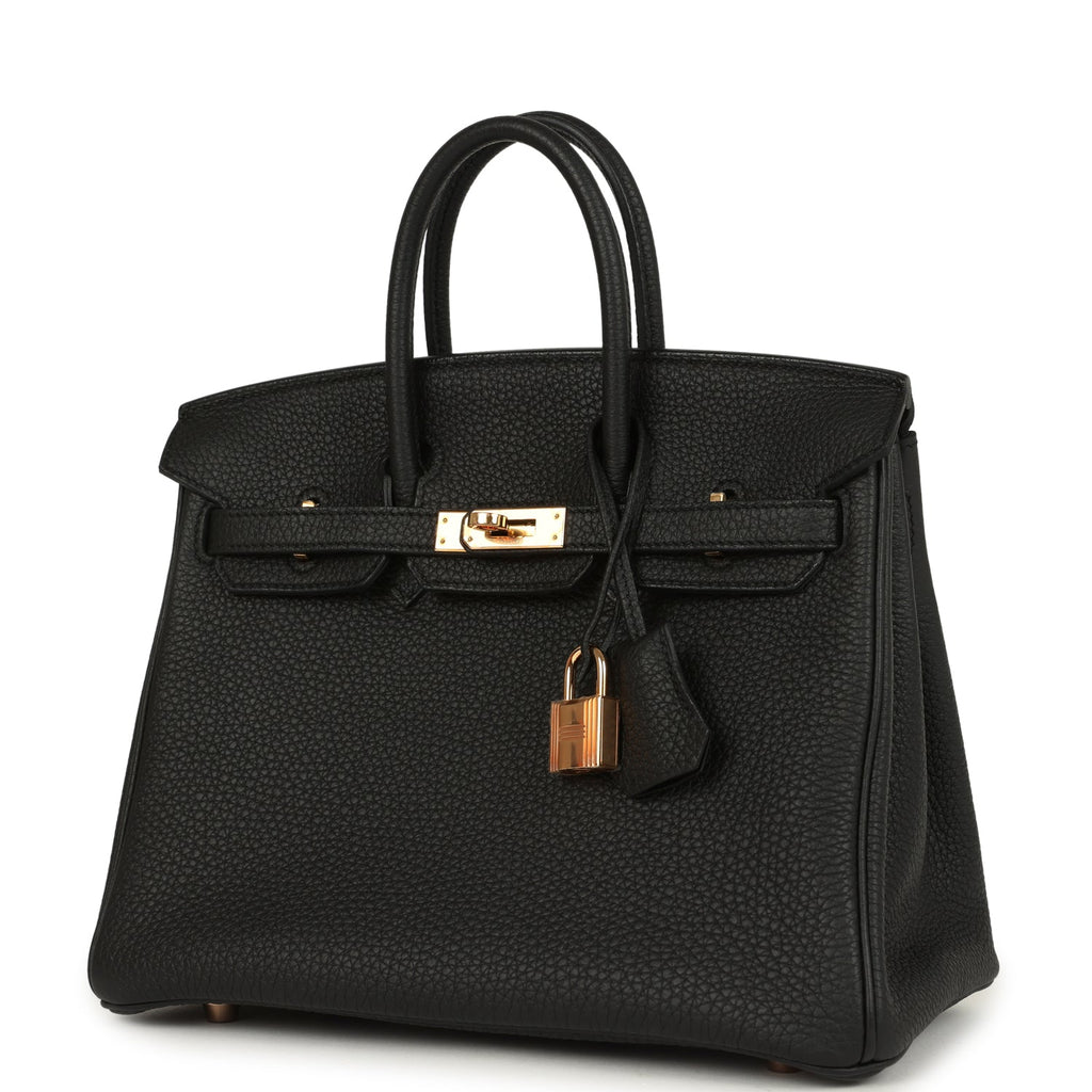 Pre-owned Hermes Birkin 25 Black Togo Rose Gold Hardware