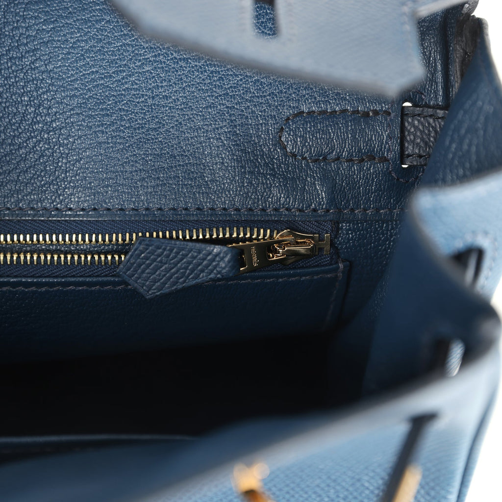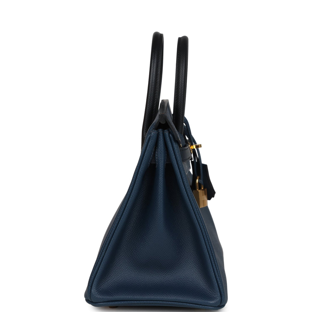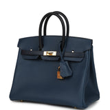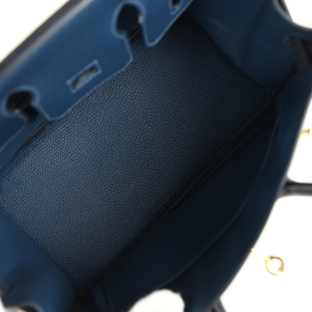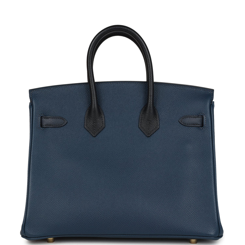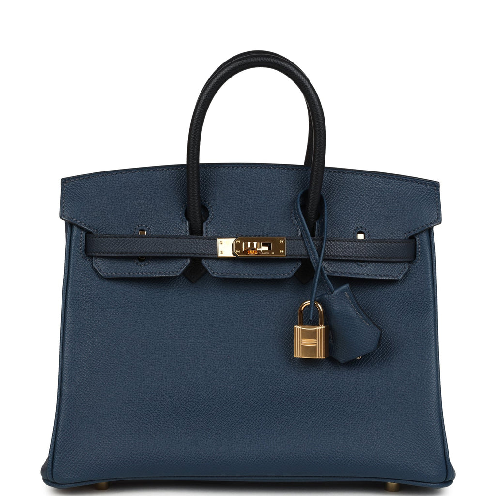 Pre-owned Hermes Birkin 25 Tri-color Bleu De Prusse, Bleu Indigo and Black Epsom Gold Hardware