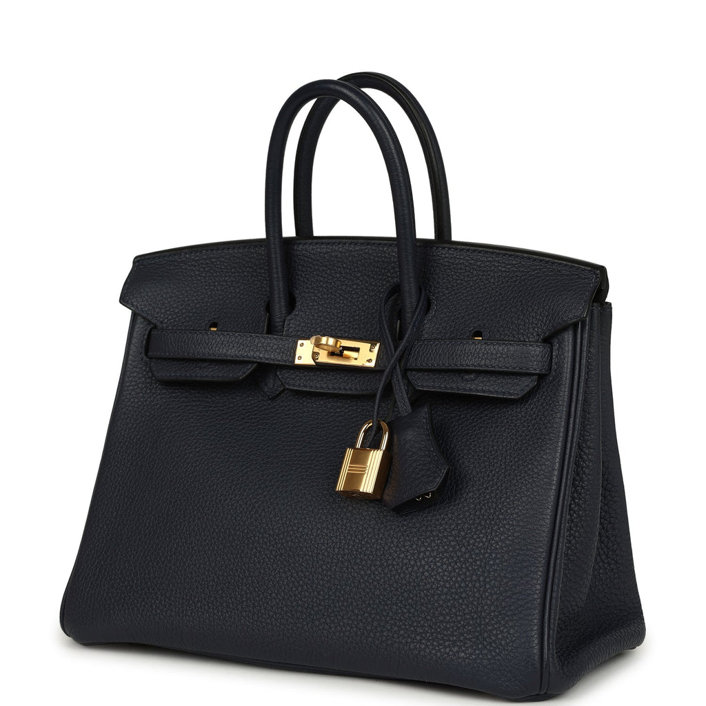Pre-owned Hermes Birkin 25 Bleu Nuit Togo Gold Hardware