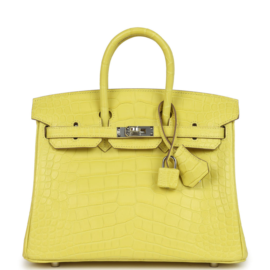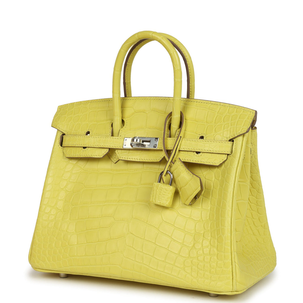 Pre-owned Hermes Birkin 25 Lime Matte Alligator Palladium Hardware