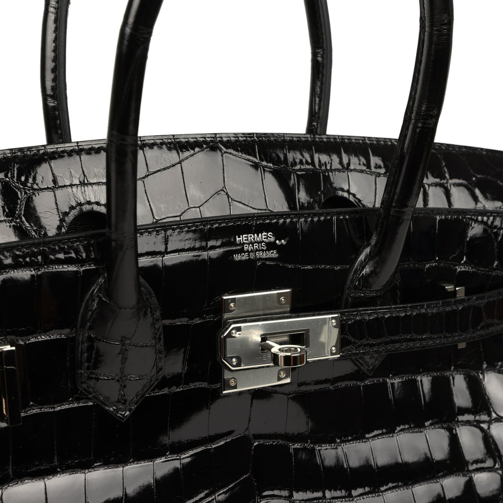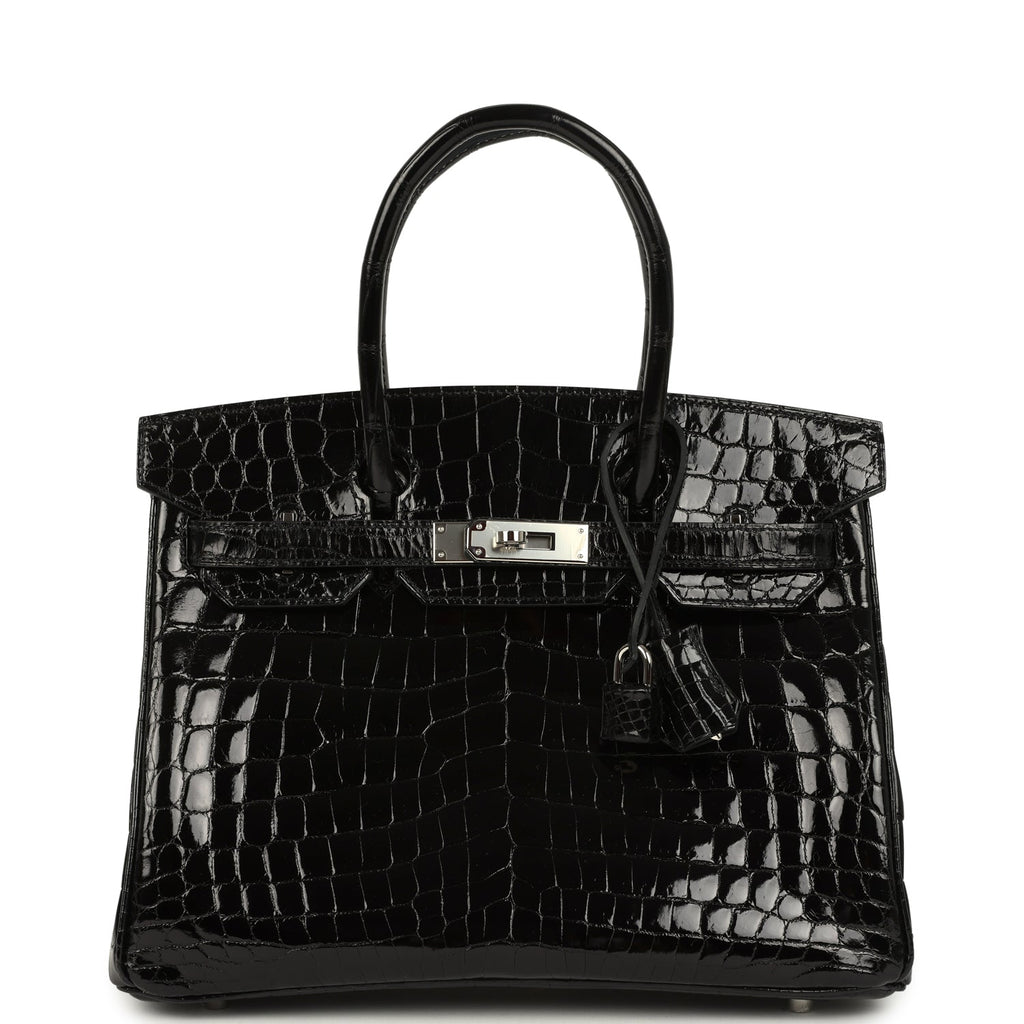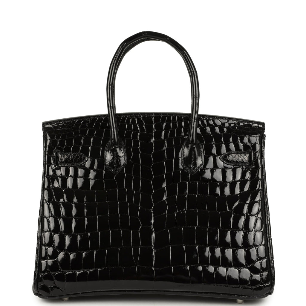 Pre-owned Hermes Birkin 30 Black Shiny Crocodile Niloticus Palladium Hardware