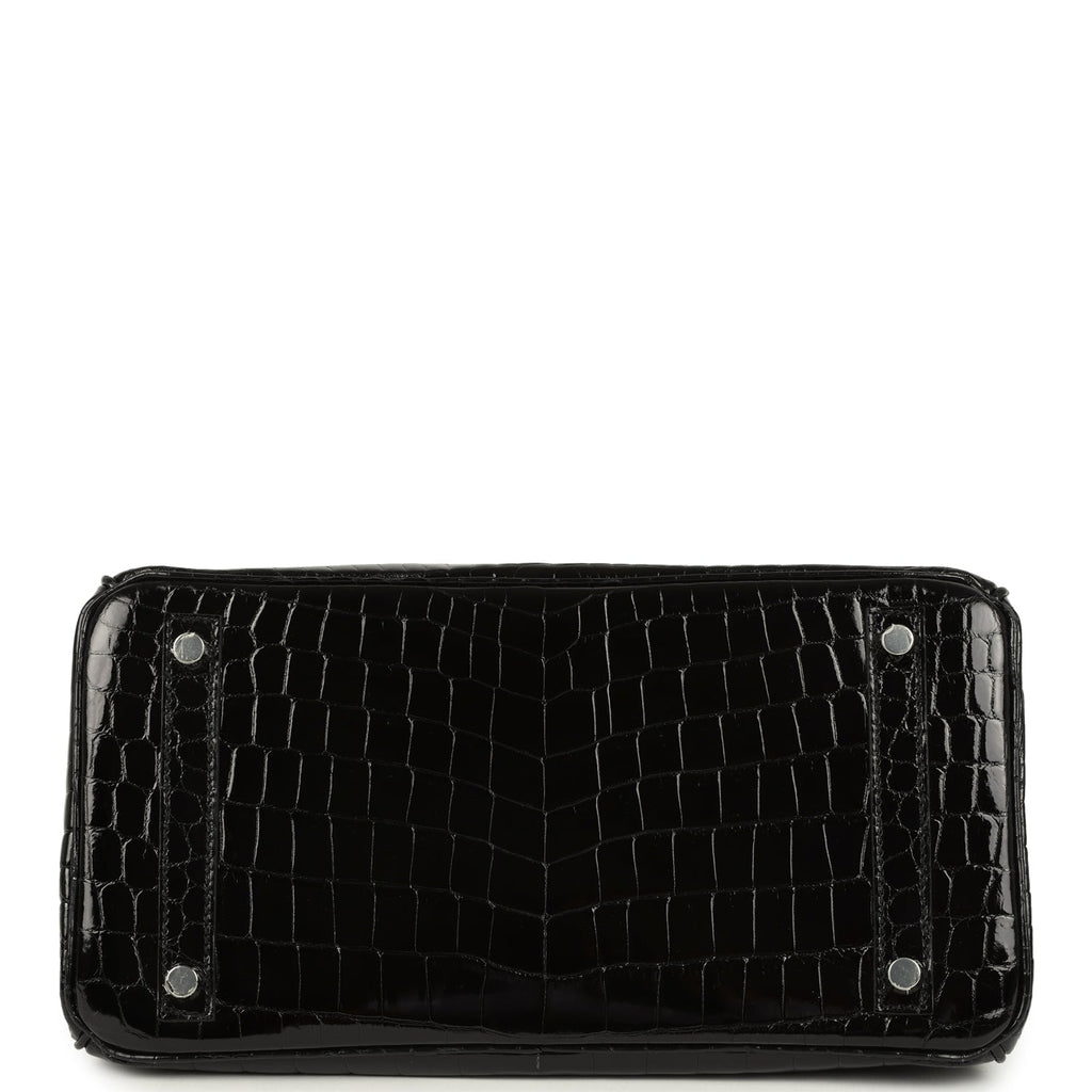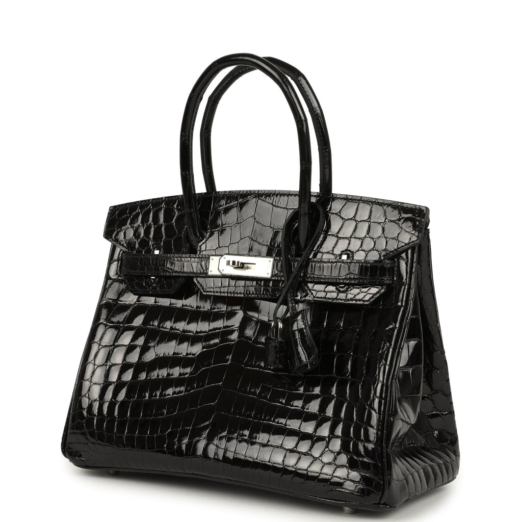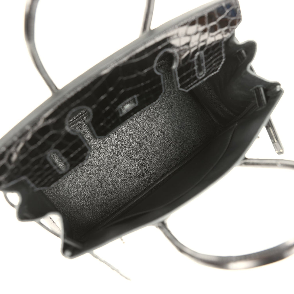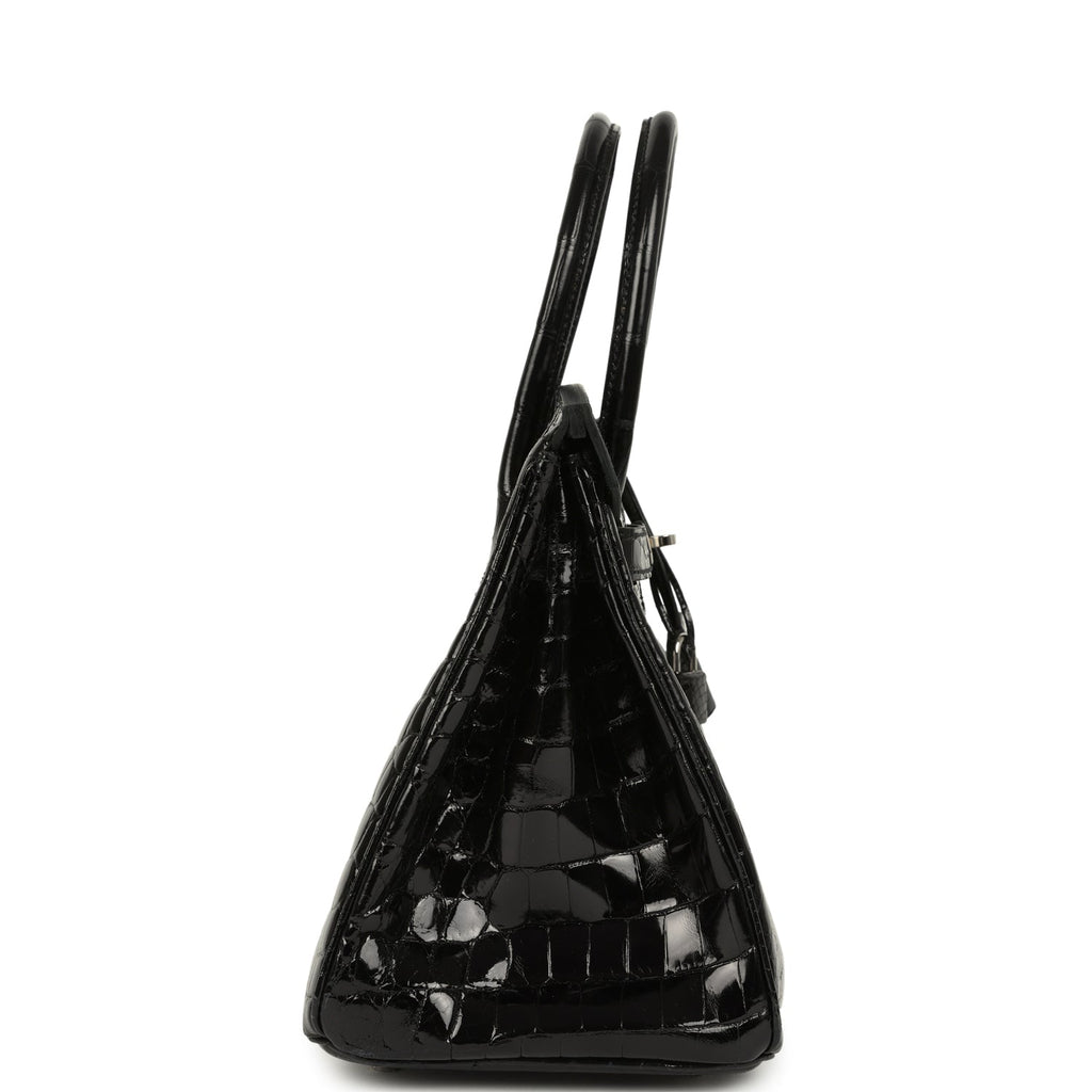 Pre-owned Hermes Birkin 30 Black Shiny Crocodile Niloticus Palladium Hardware