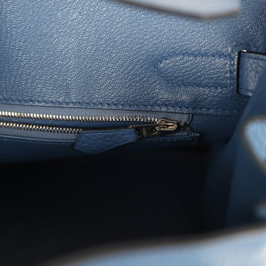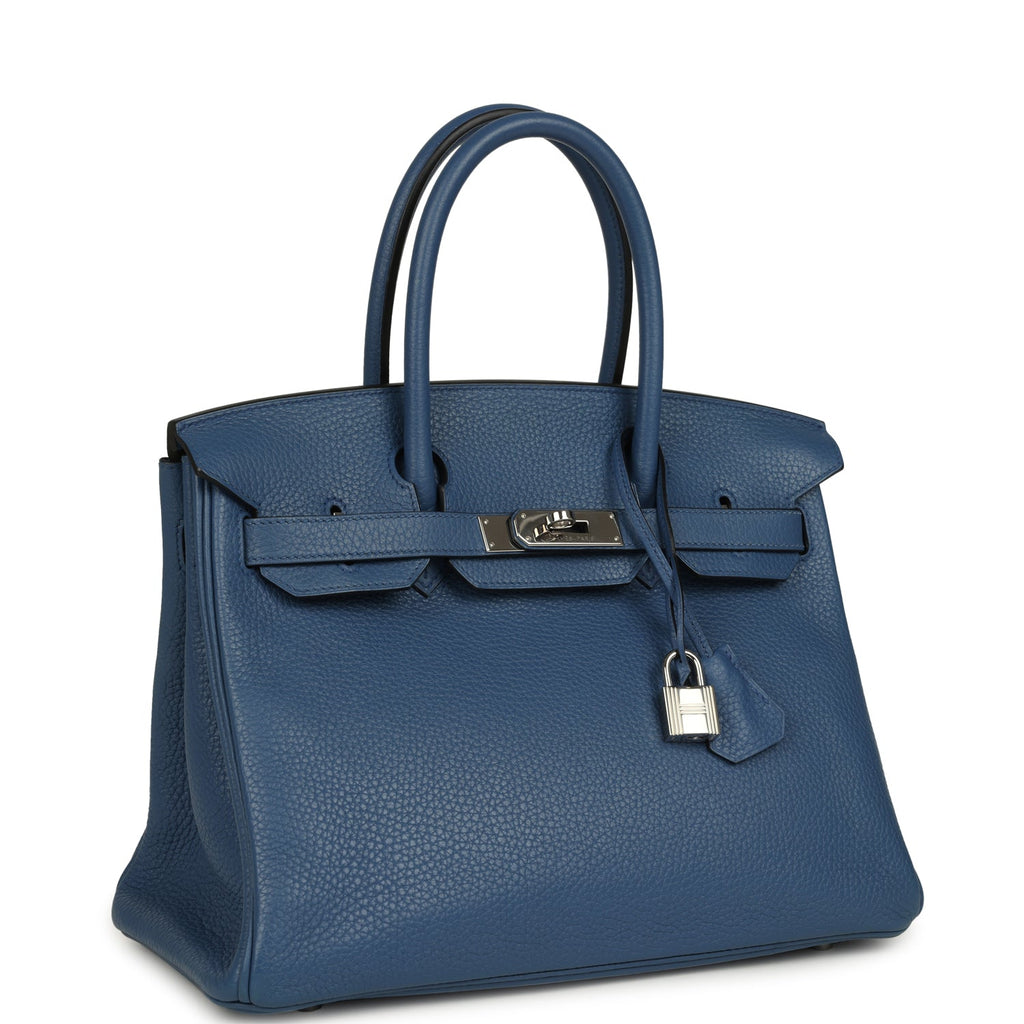 Pre-owned Hermes Birkin 30 Bleu Agate Clemence Palladium Hardware