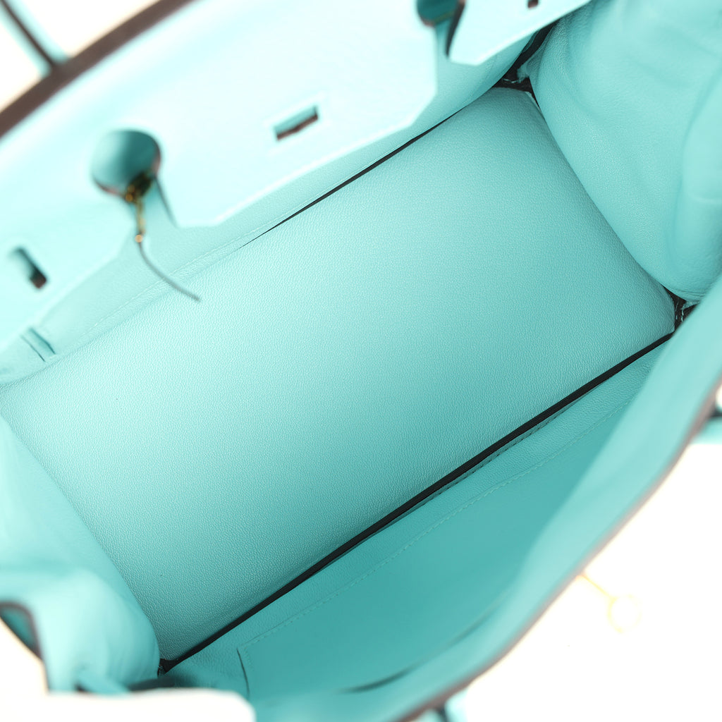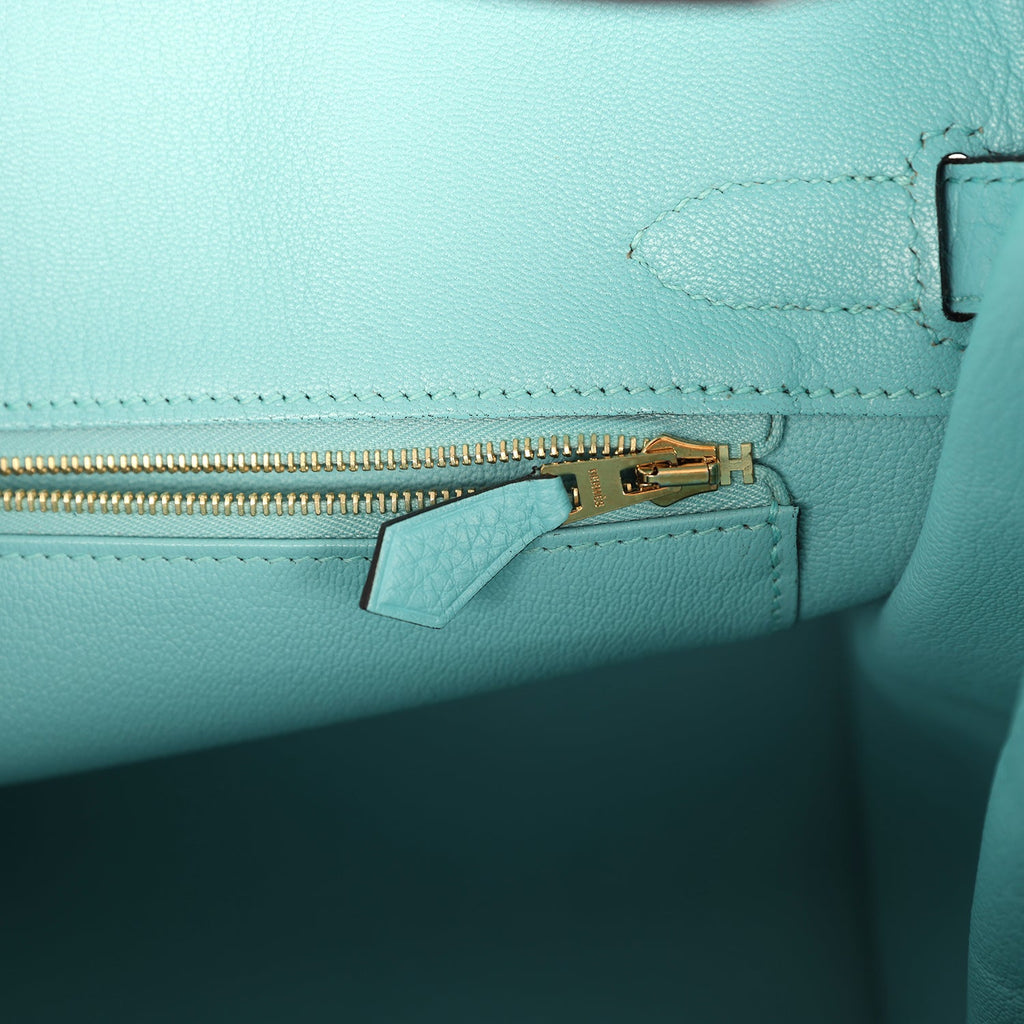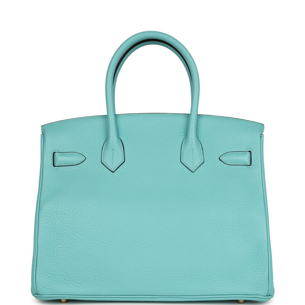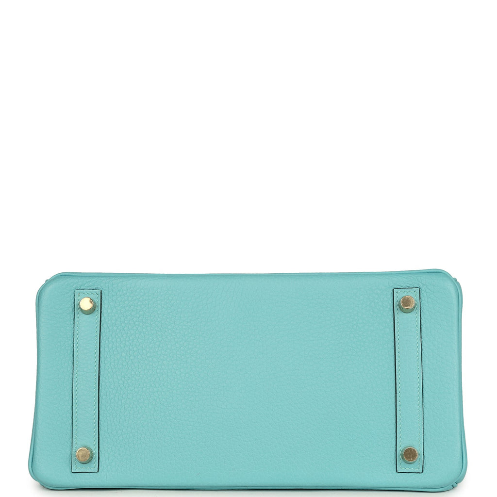 Pre-owned Hermes Birkin 30 Bleu Atoll Clemence Gold Hardware