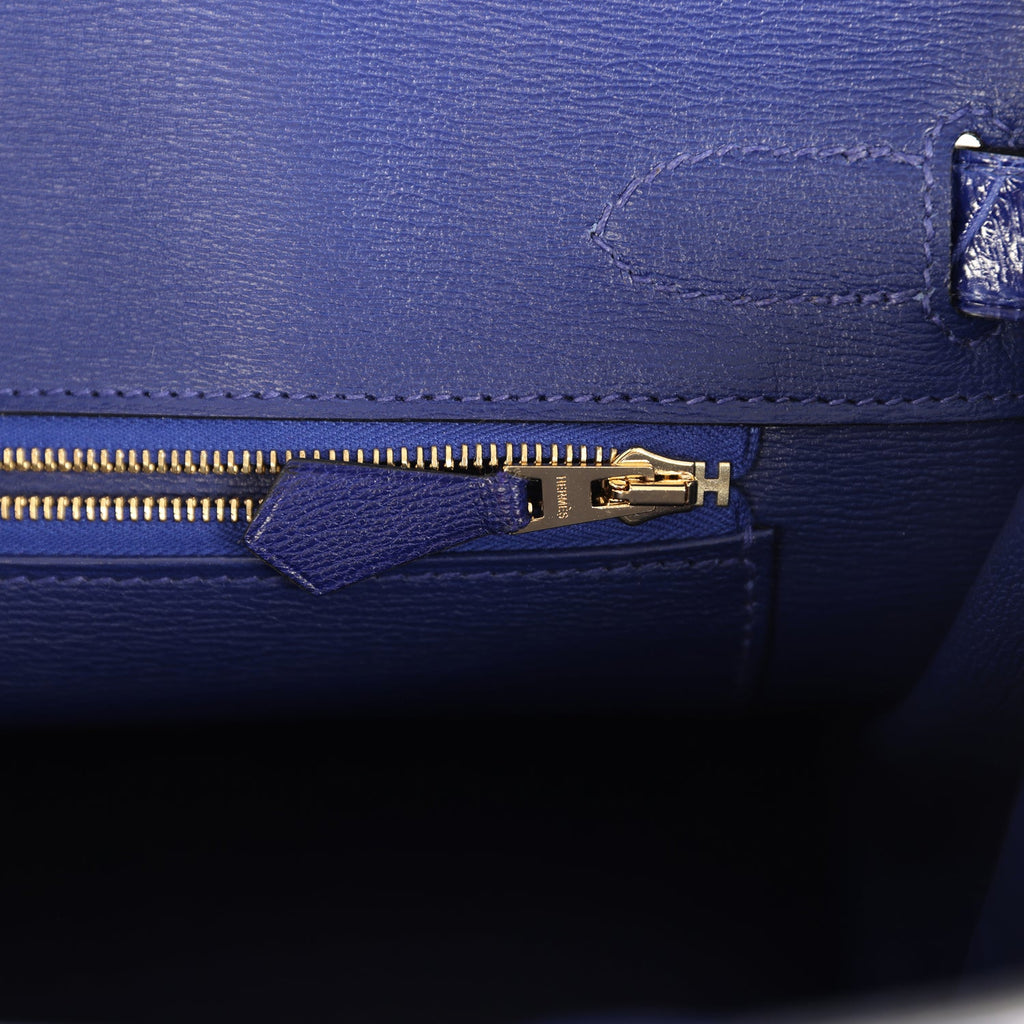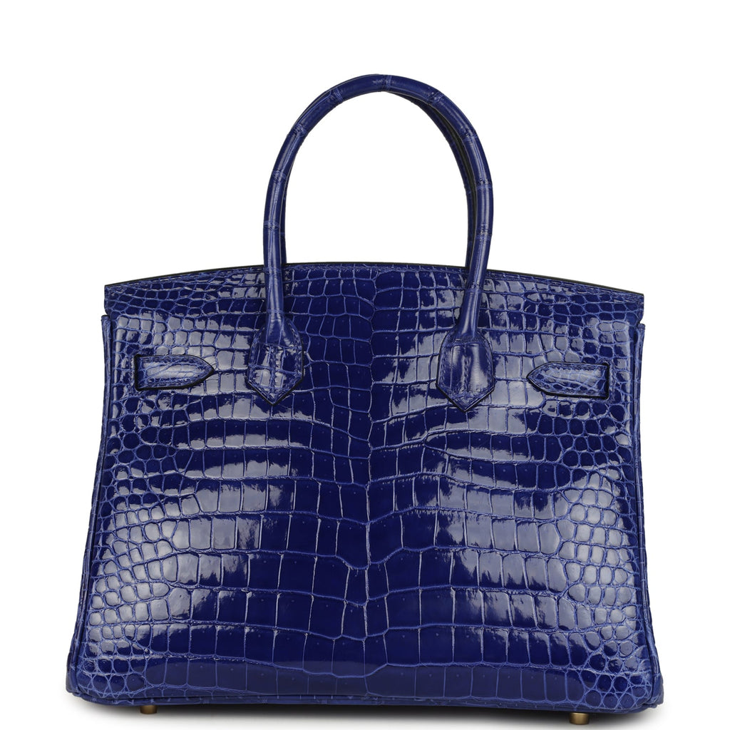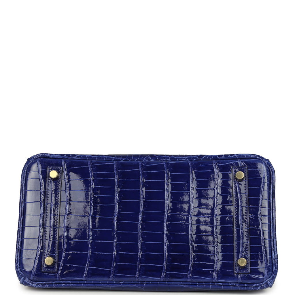 Pre-owned Hermes Birkin 30 Bleu Electric Shiny Porosus Crocodile Gold Hardware