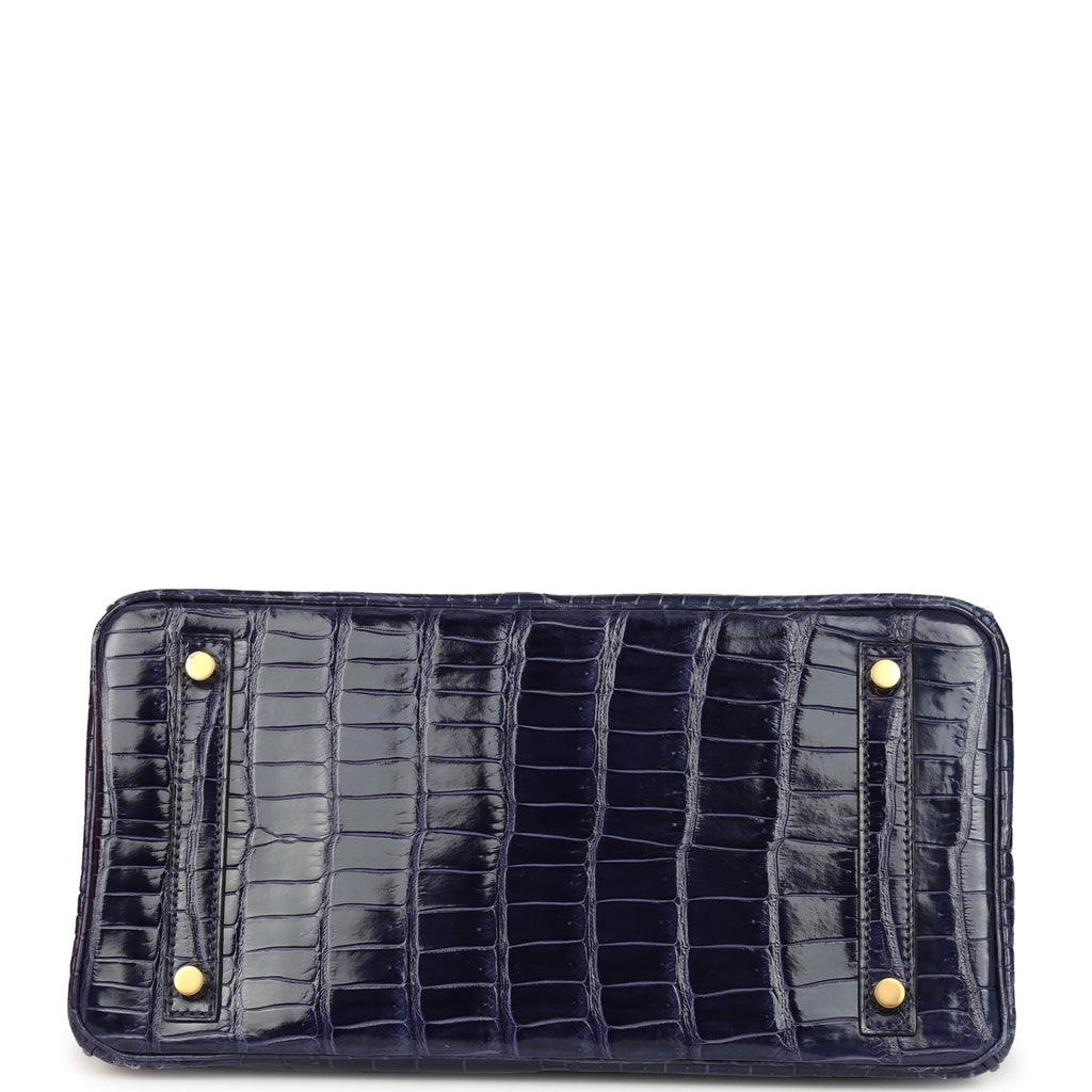 Pre-owned Hermes Birkin 30 Bleu Encre Shiny Porosus Crocodile Gold Hardware