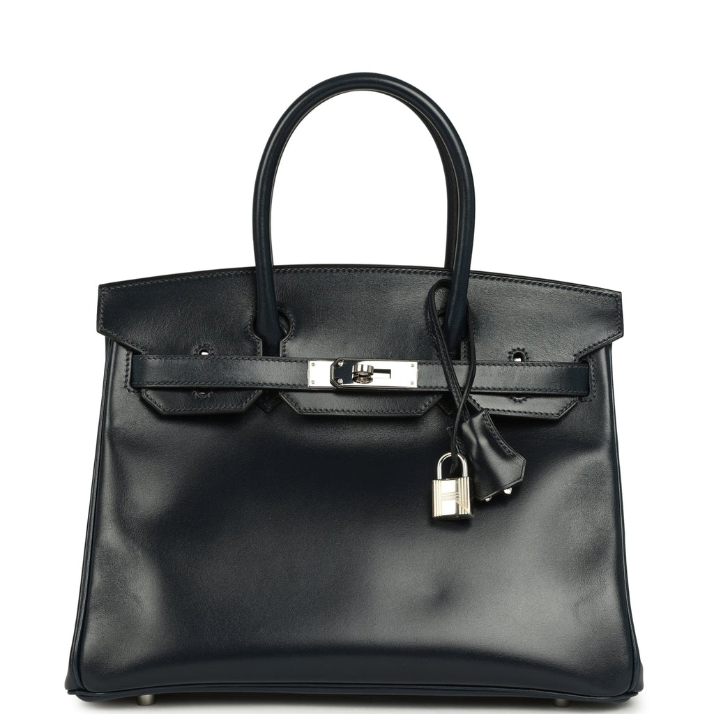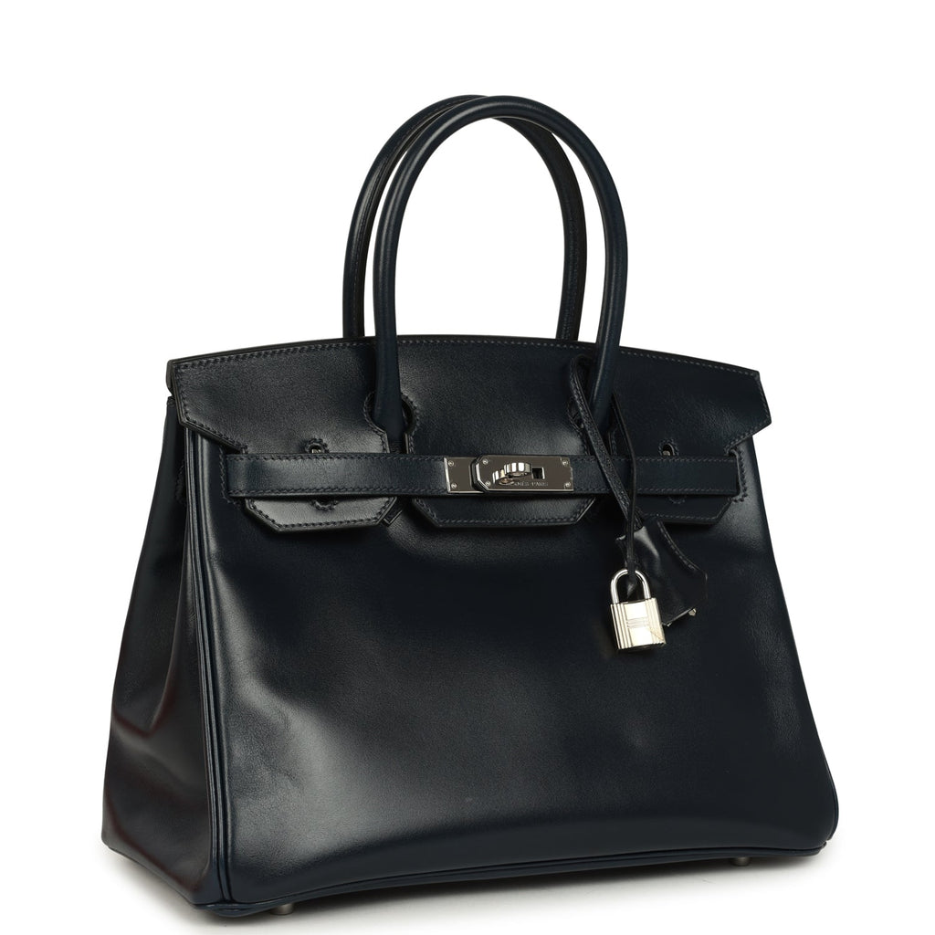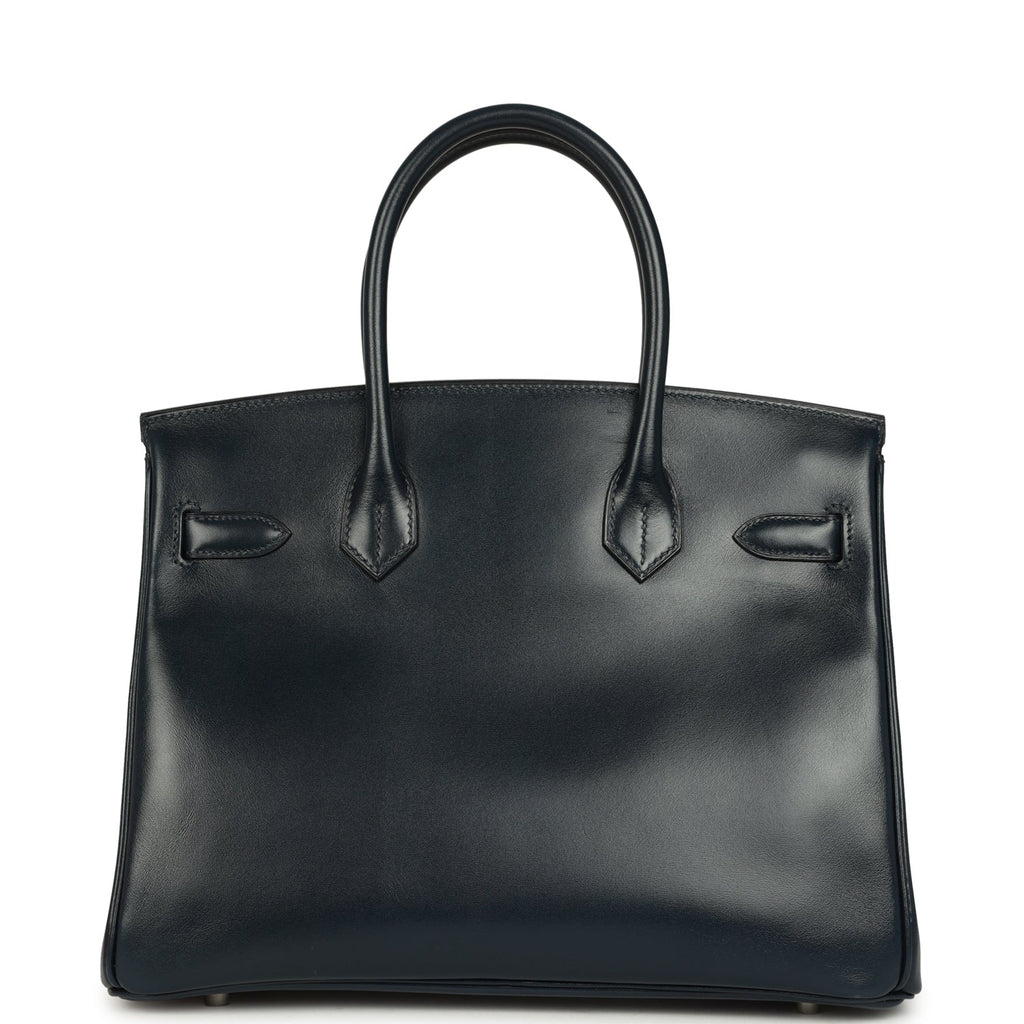 Pre-owned Hermes Birkin 30 Bleu Marine Box Palladium Hardware