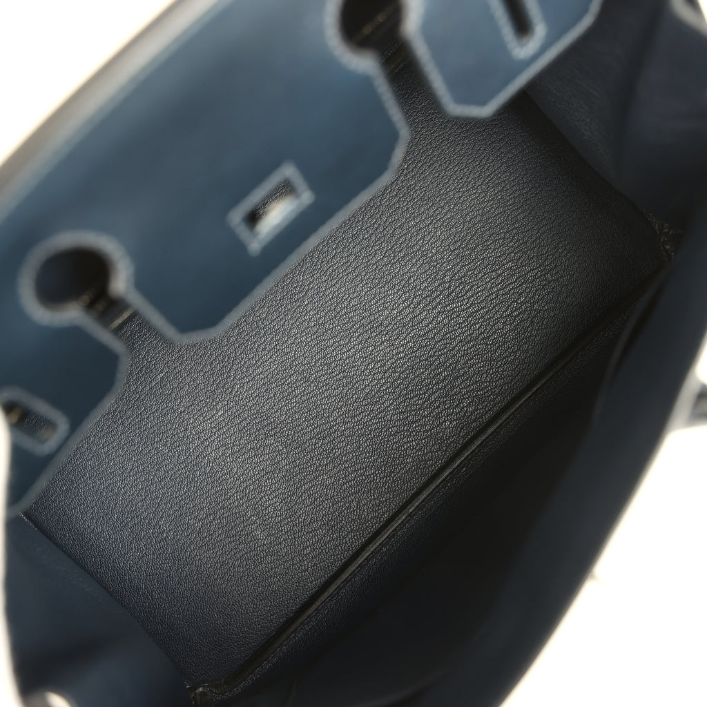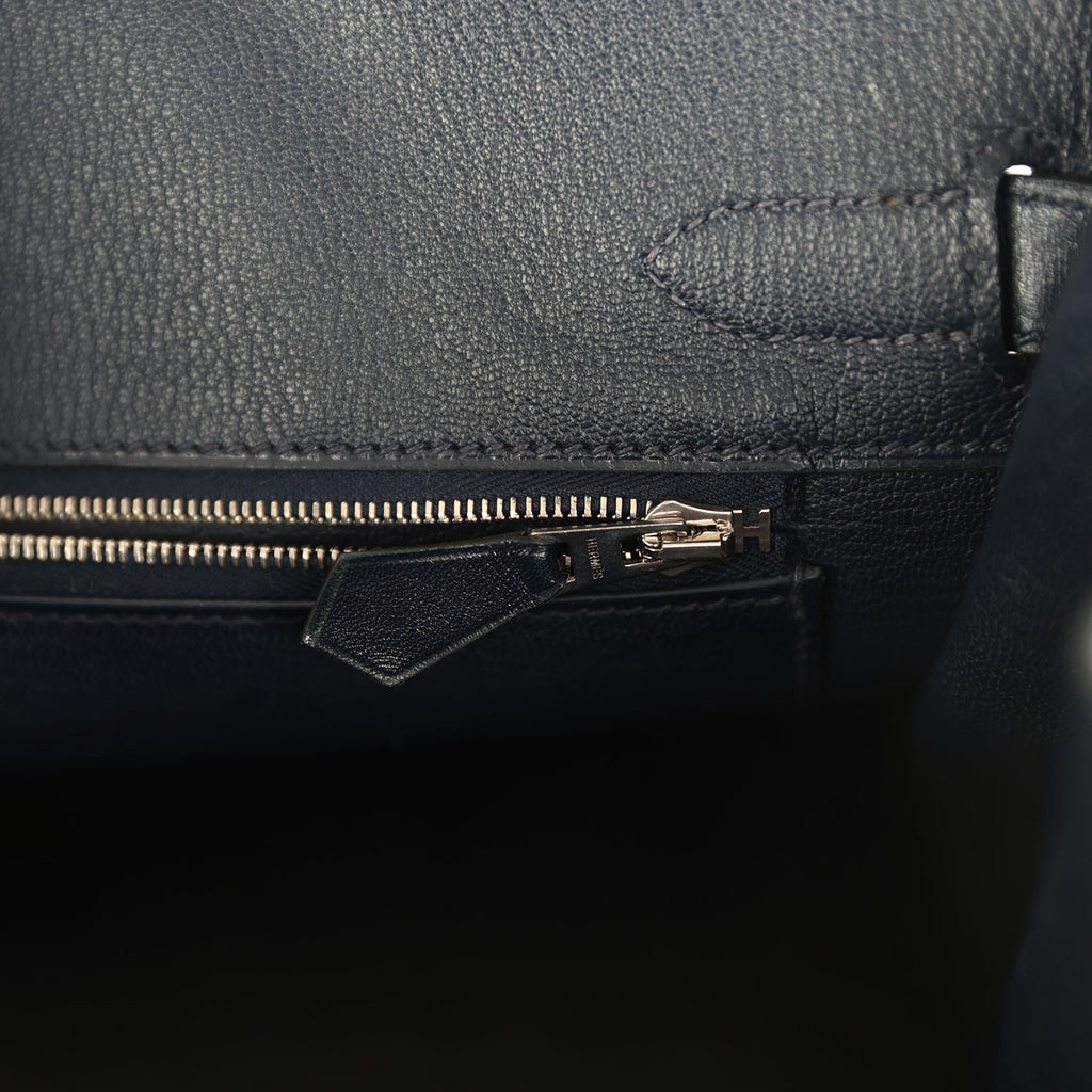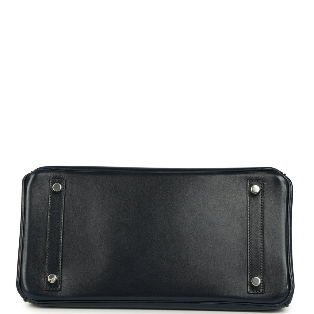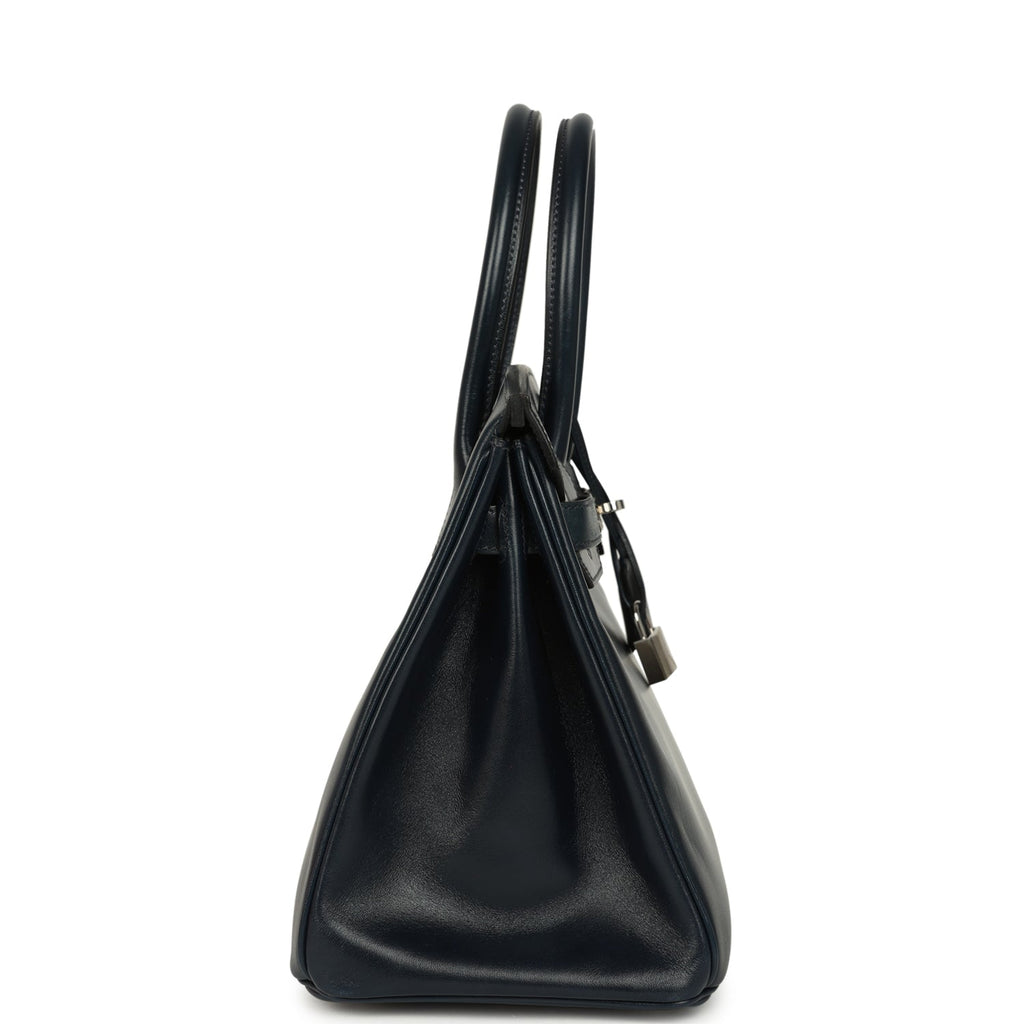 Pre-owned Hermes Birkin 30 Bleu Marine Box Palladium Hardware