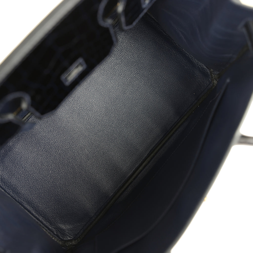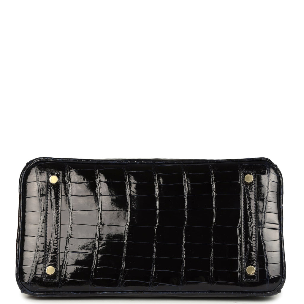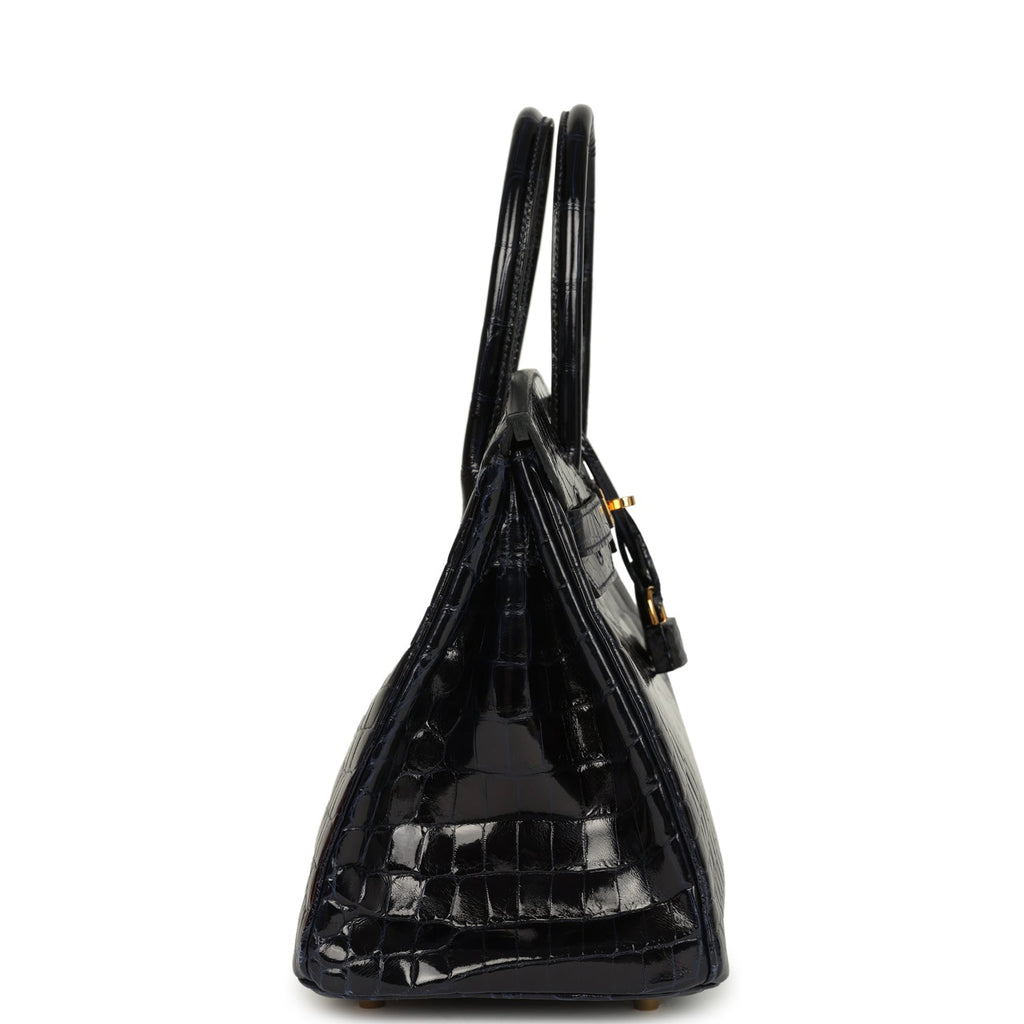 Pre-owned Hermes Birkin 30 Bleu Marine Shiny Niloticus Crocodile Gold Hardware