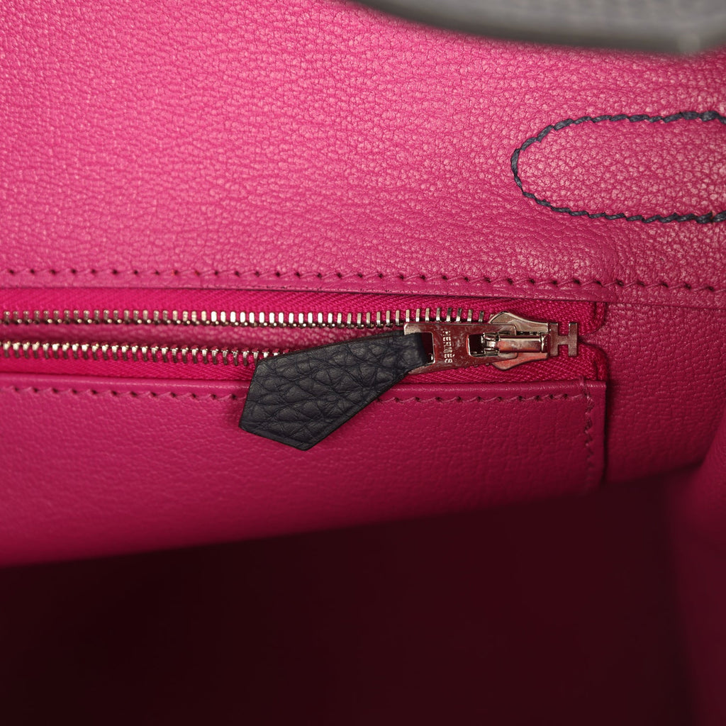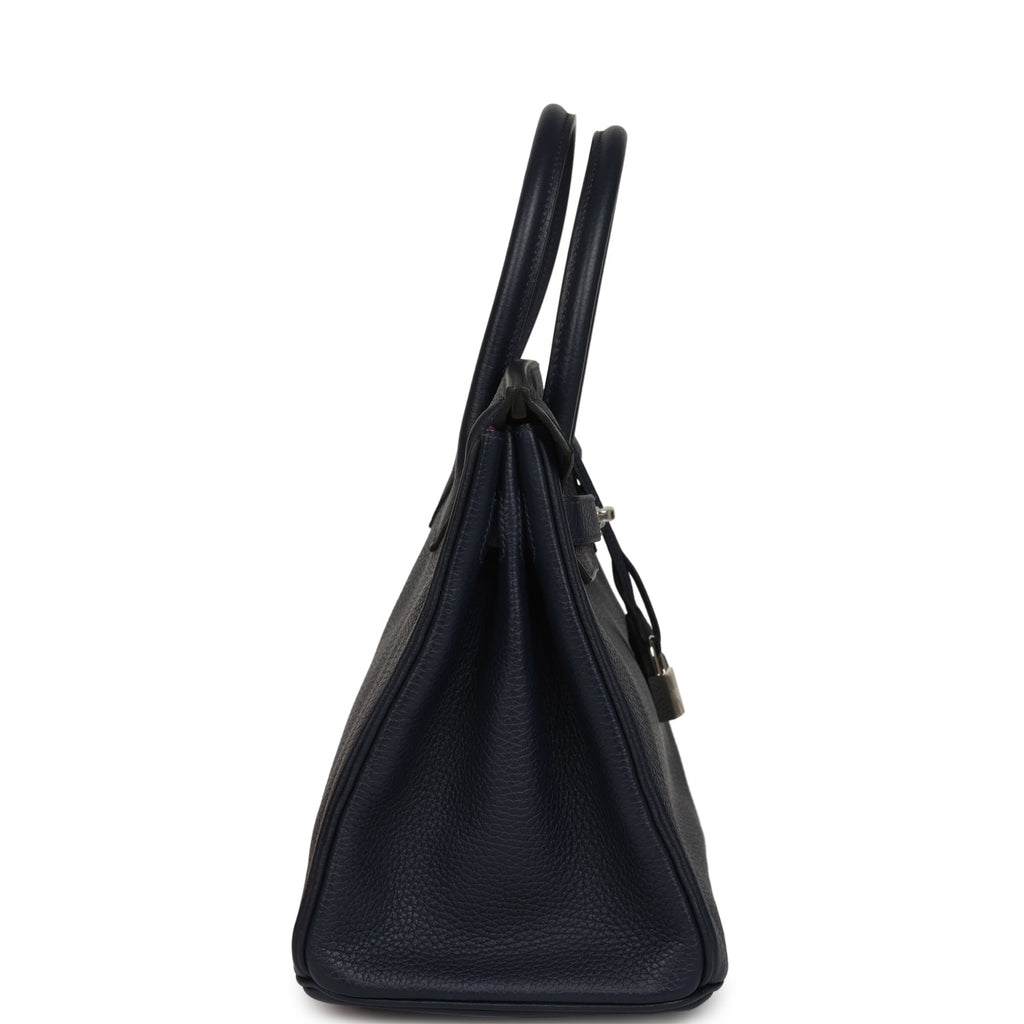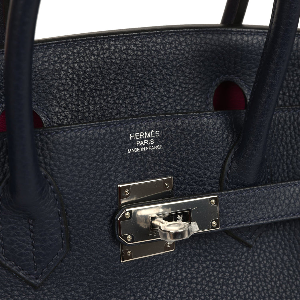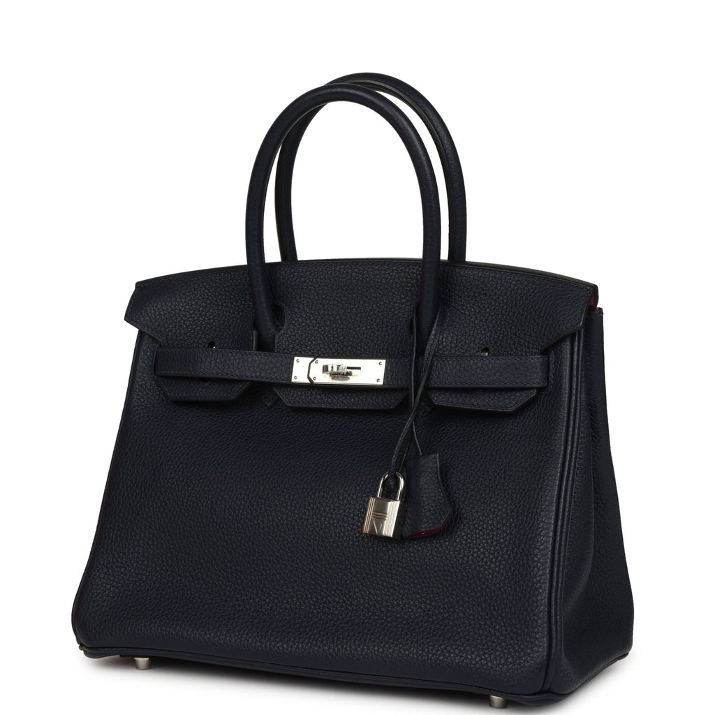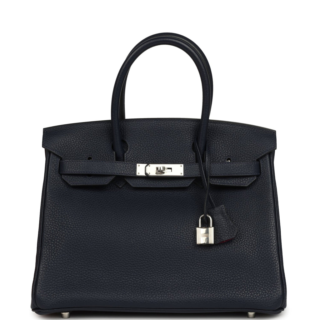 Pre-owned Hermes Birkin 30 Bleu Nuit Verso Togo Palladium Hardware