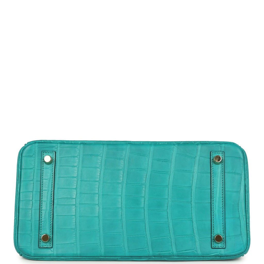 Pre-owned Hermes Birkin 30 Bleu Paon Matte Alligator Gold Hardware