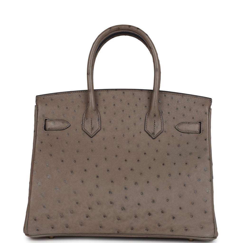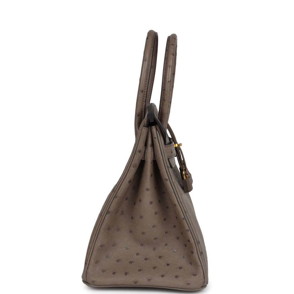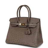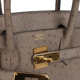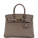 Pre-owned Hermes Birkin 30 Gris Asphalte Ostrich Gold Hardware