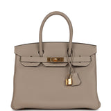 Pre-owned Hermes Birkin 30 Gris Tourterelle Togo Gold Hardware