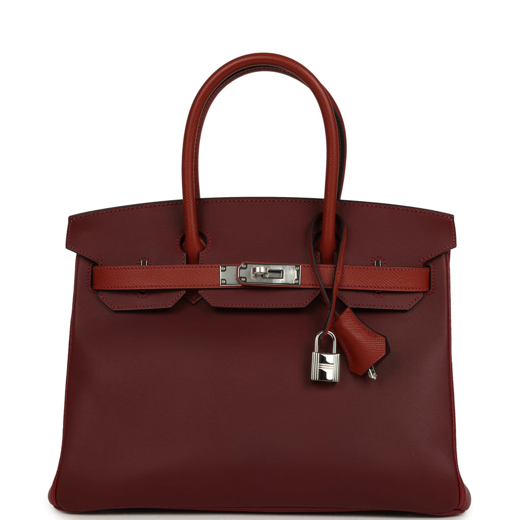 Pre-owned Hermes Birkin 30 Rouge H Sombrero, Epsom and Clemence Palladium Hardware