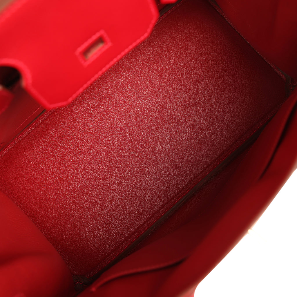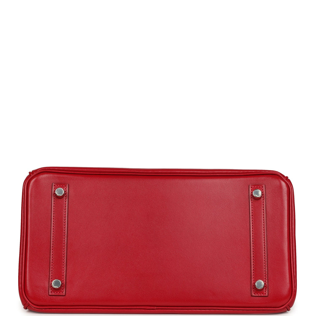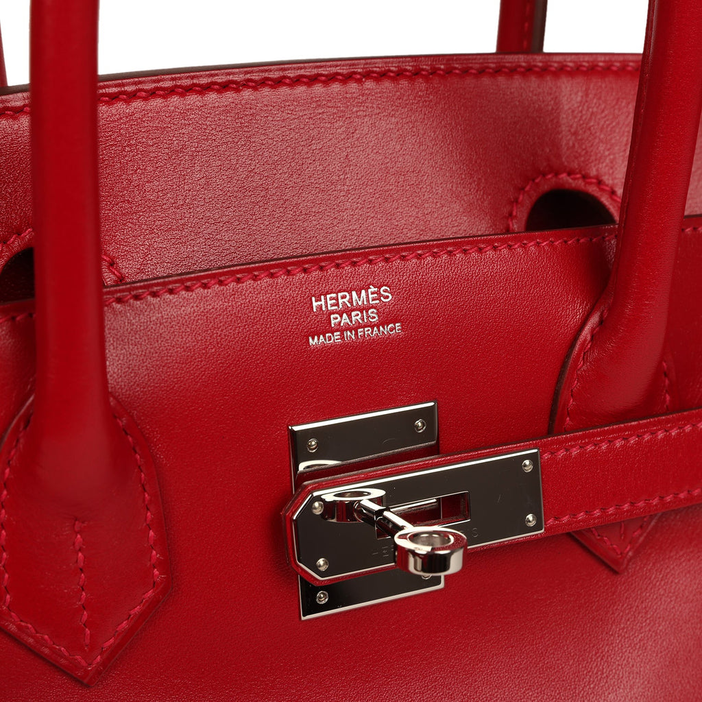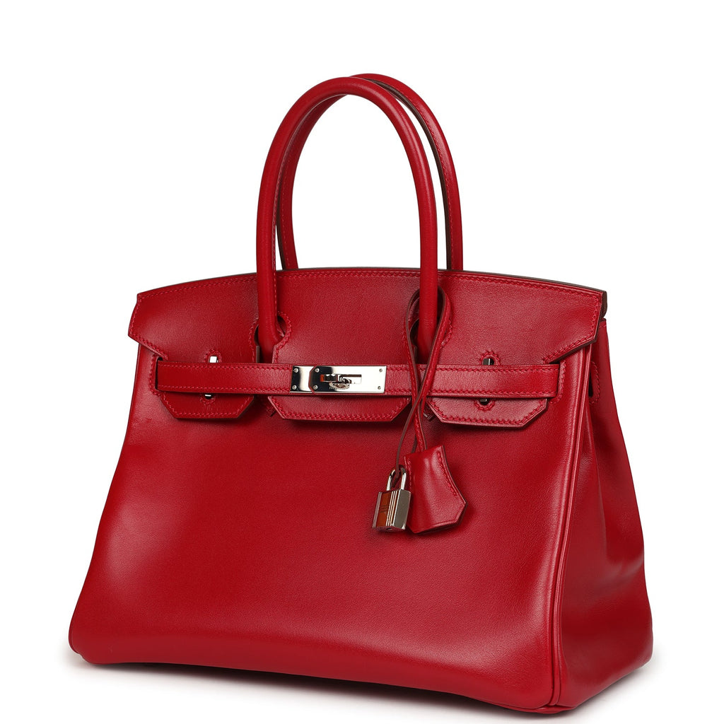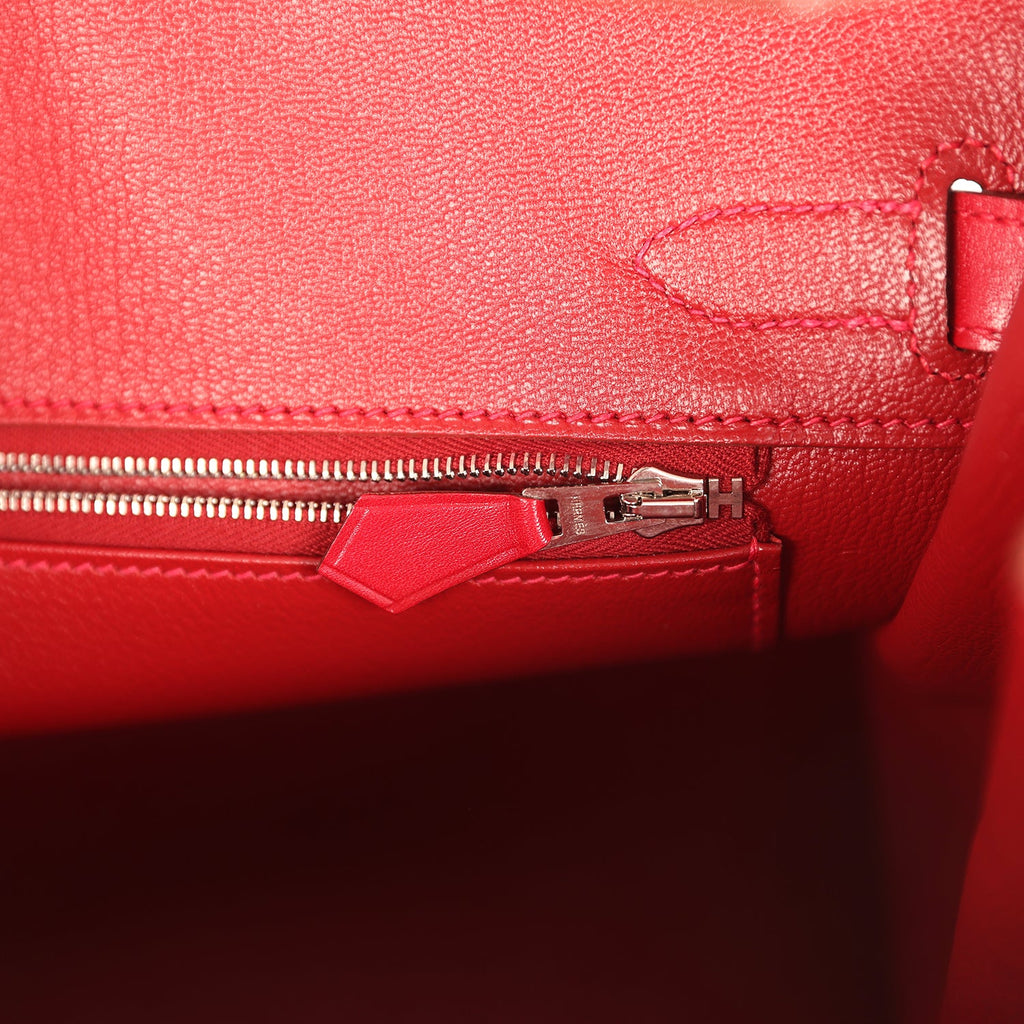 Pre-owned Hermes Birkin 30 Rouge Vif Tadelakt Palladium Hardware