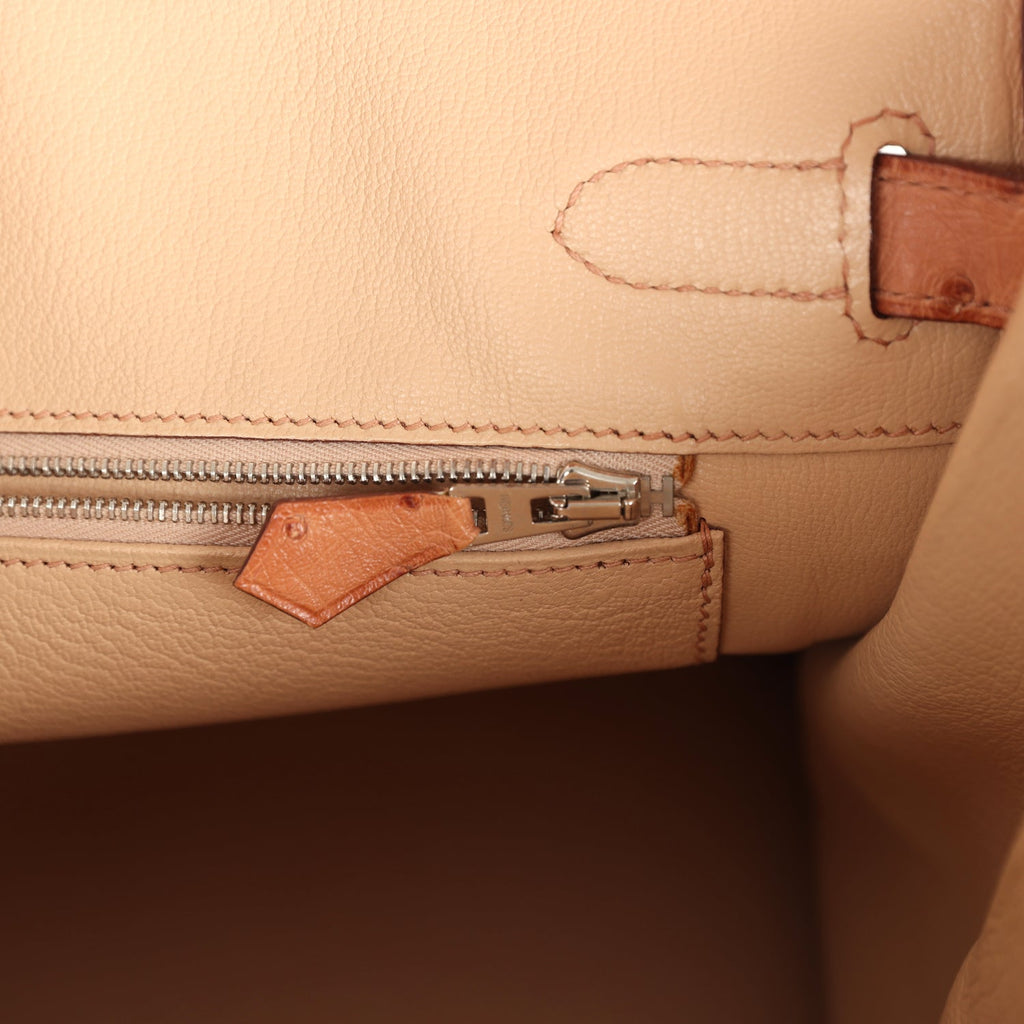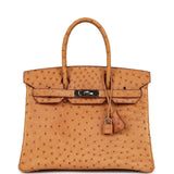 Pre-owned Hermes Birkin 30 Natural Sable Ostrich Palladium Hardware