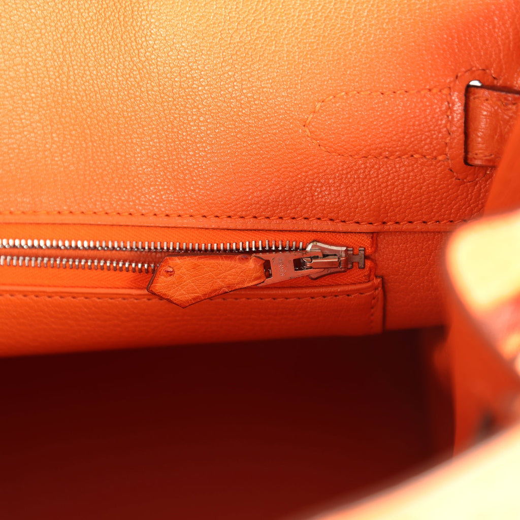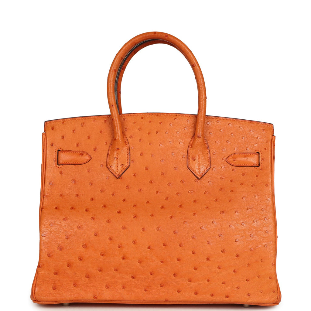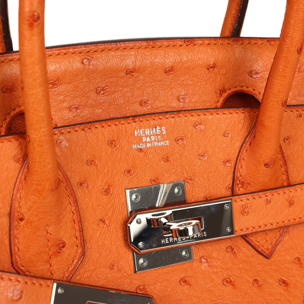 Pre-owned Hermes Birkin 30 Tangerine Ostrich Palladium Hardware
