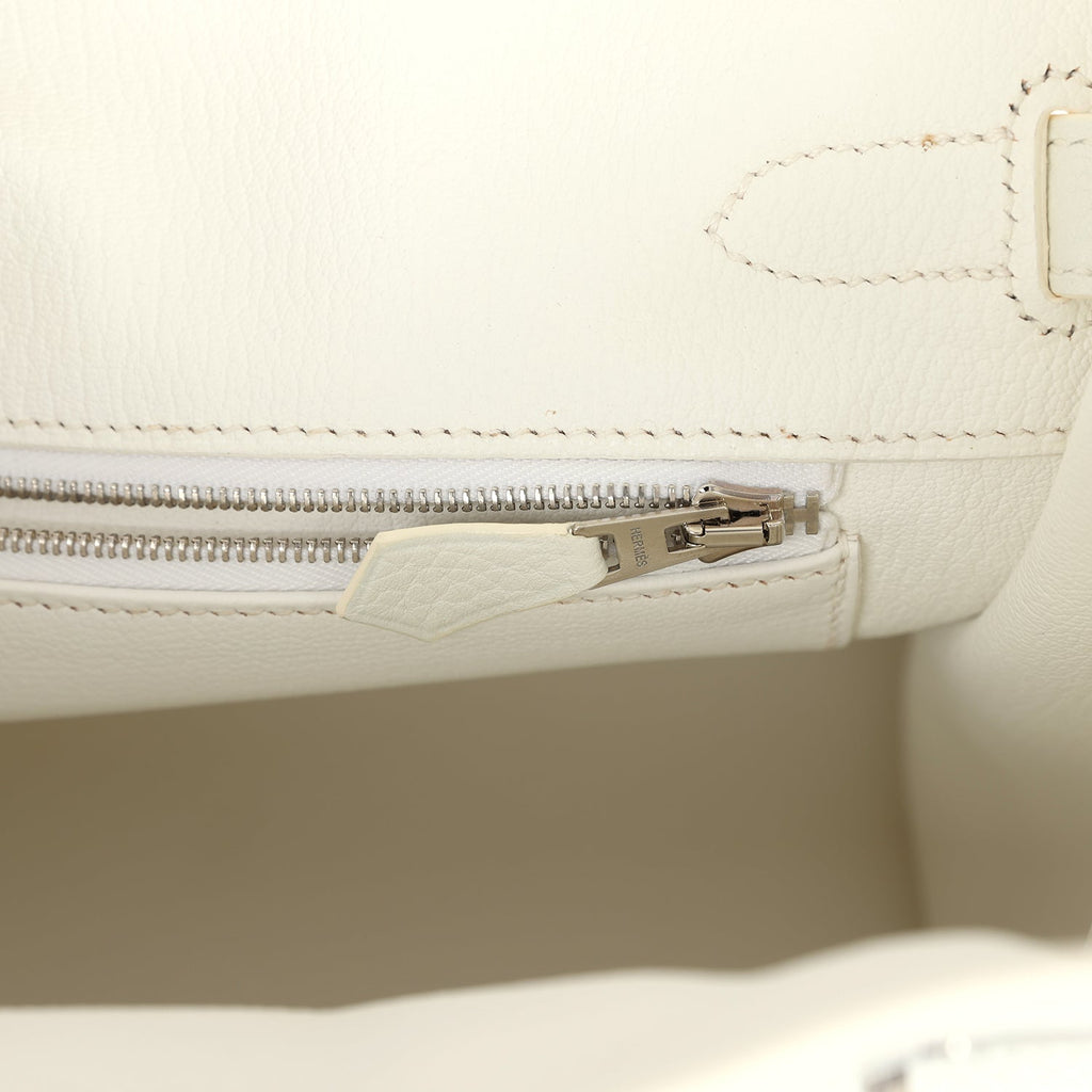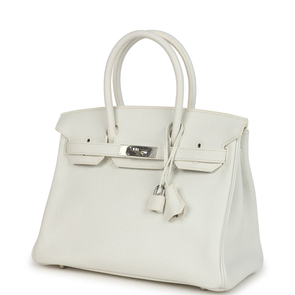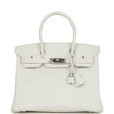 Pre-owned Hermes Birkin 30 White Clemence Palladium Hardware