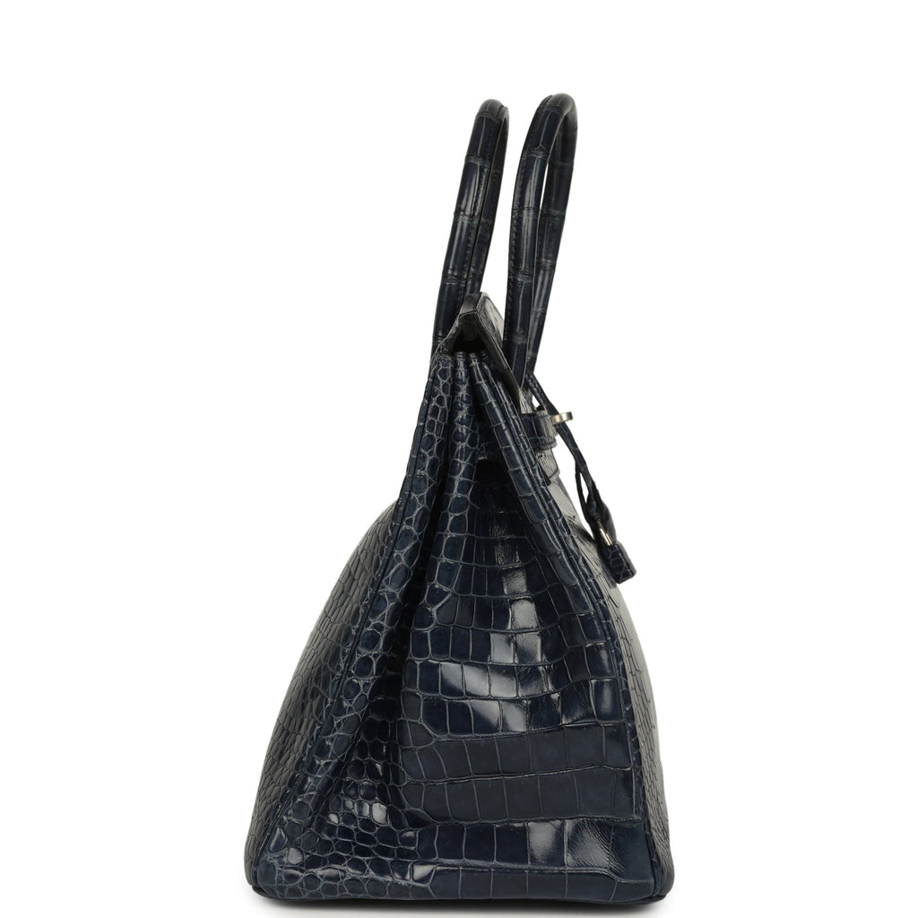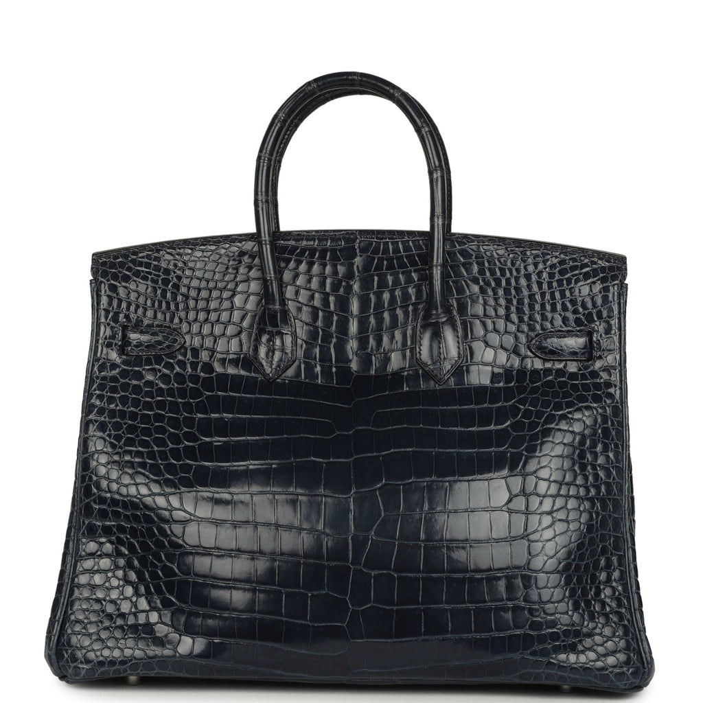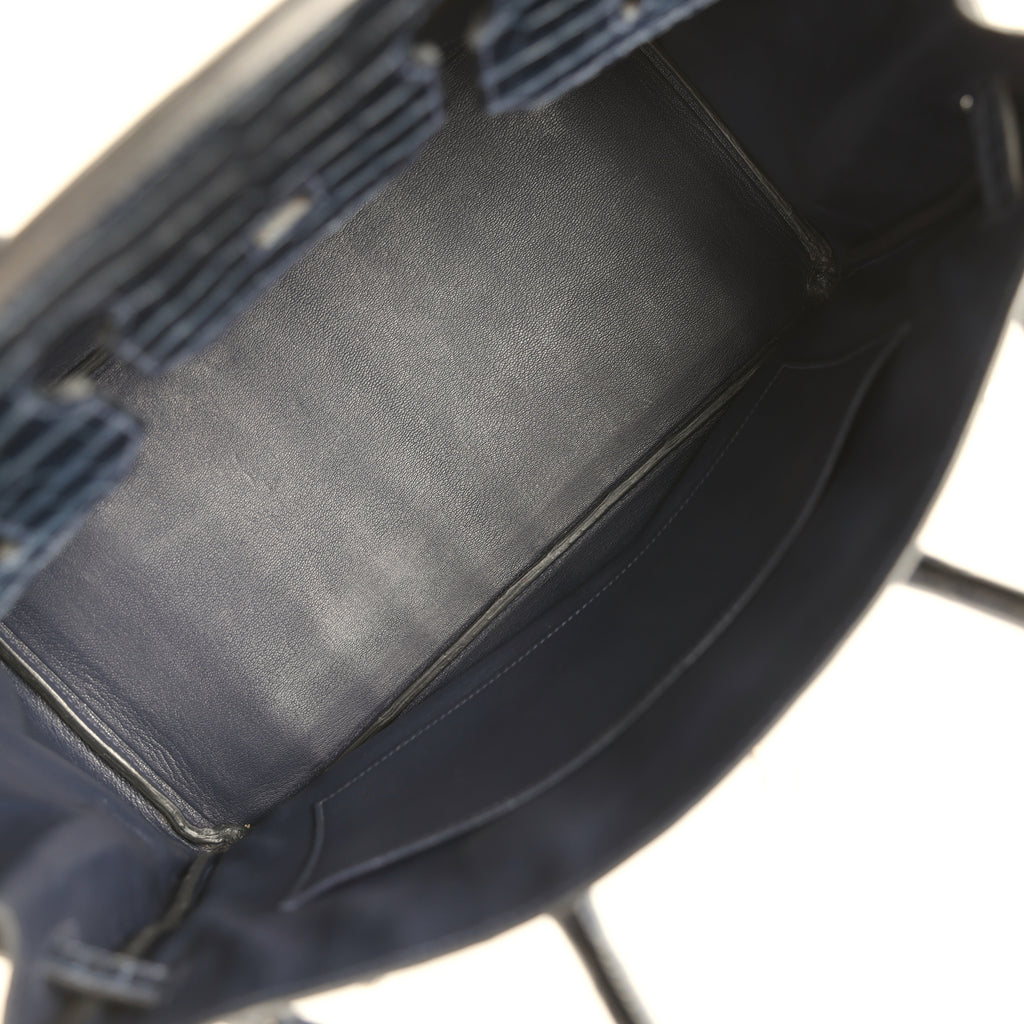 Pre-owned Hermes Birkin 35 Bleu Abysse Shiny Porosus Crocodile Palladium Hardware