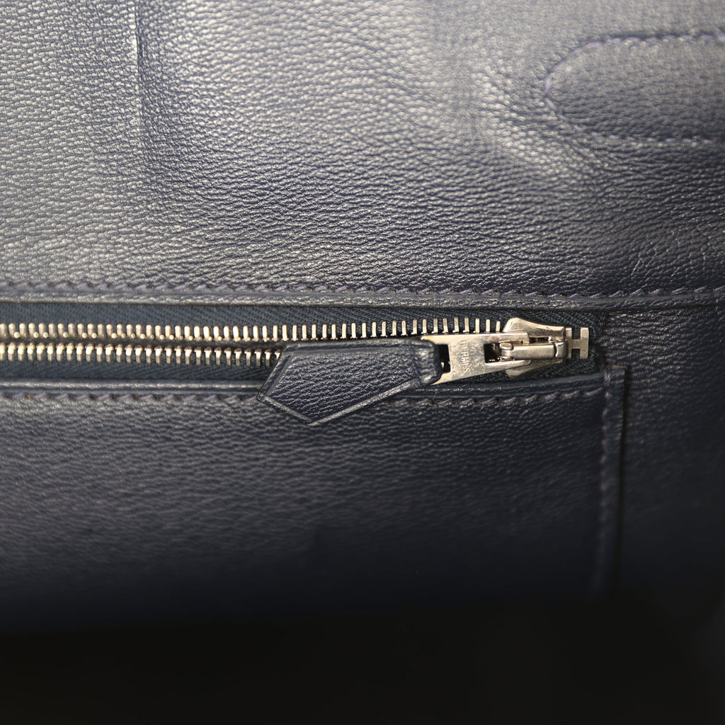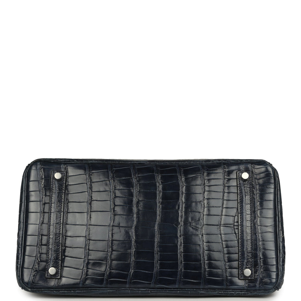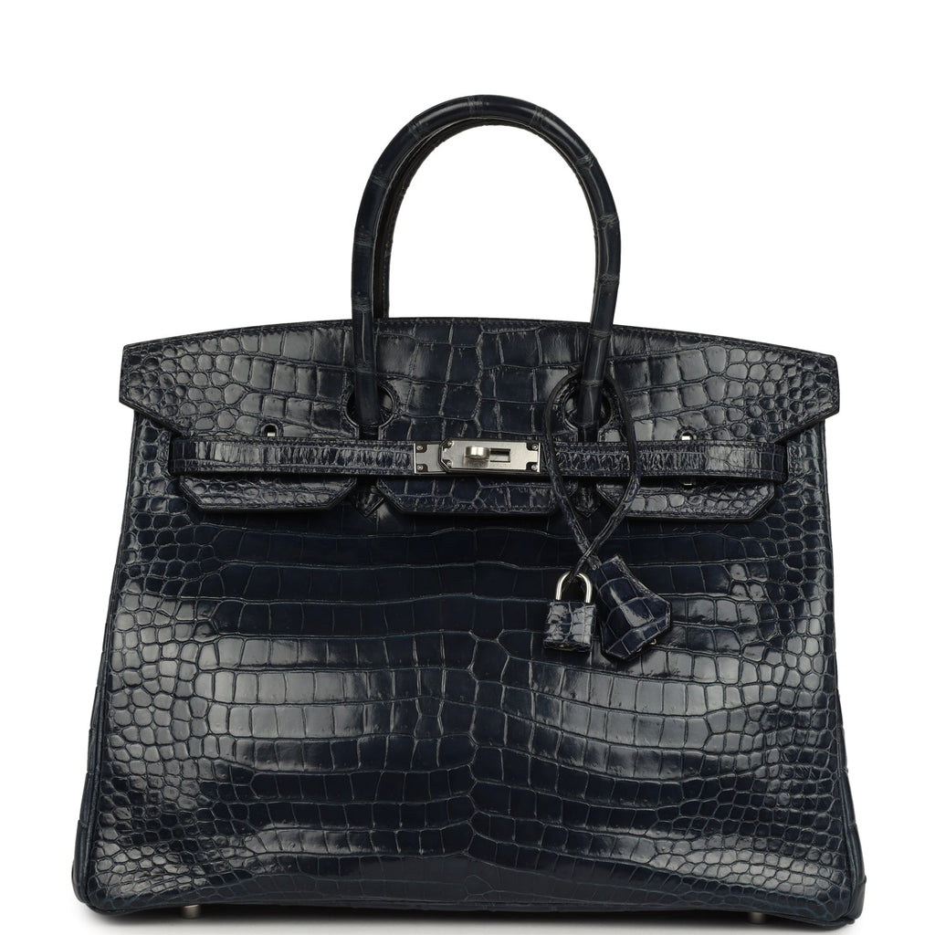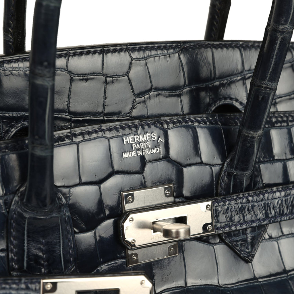Pre-owned Hermes Birkin 35 Bleu Abysse Shiny Porosus Crocodile Palladium Hardware