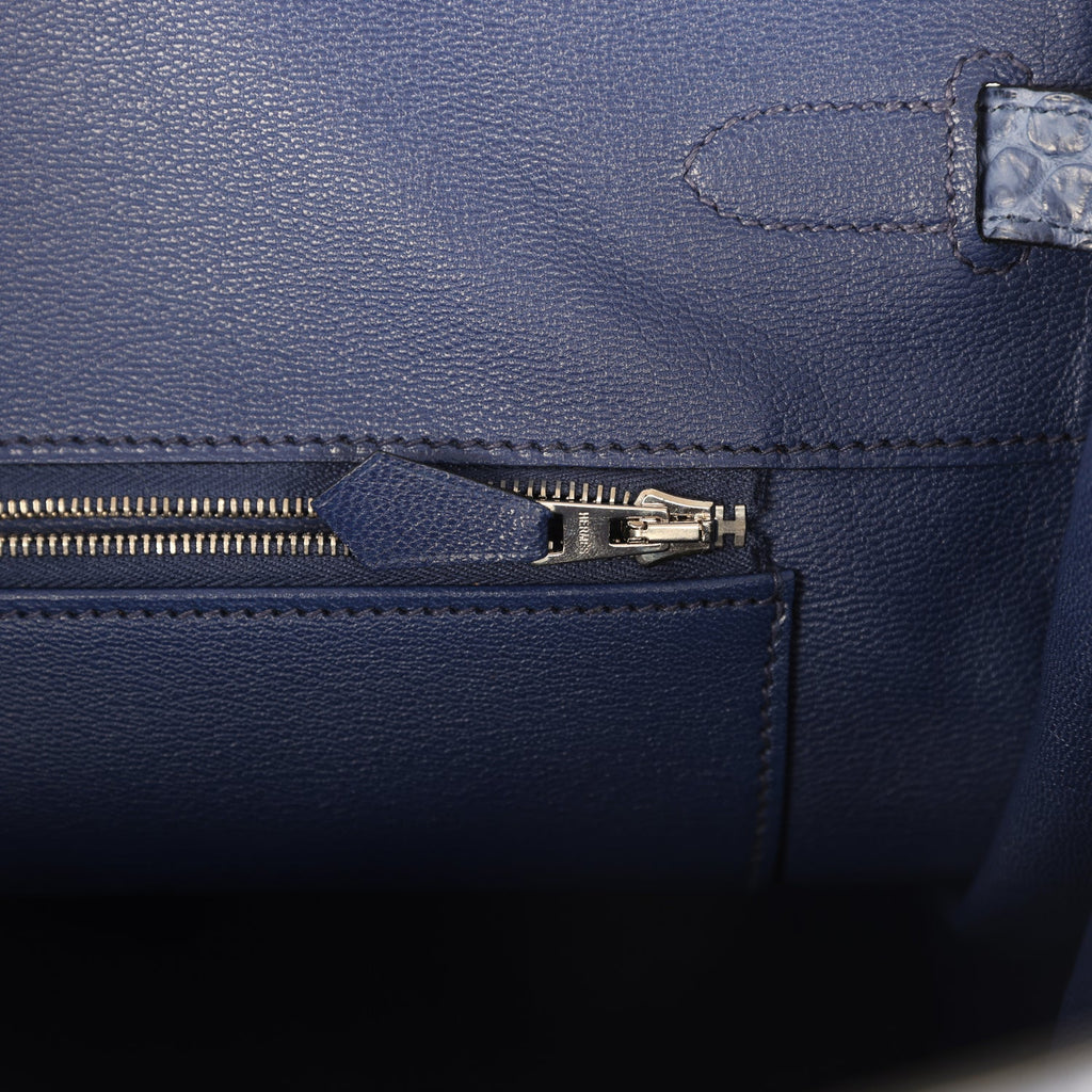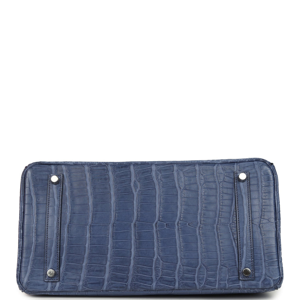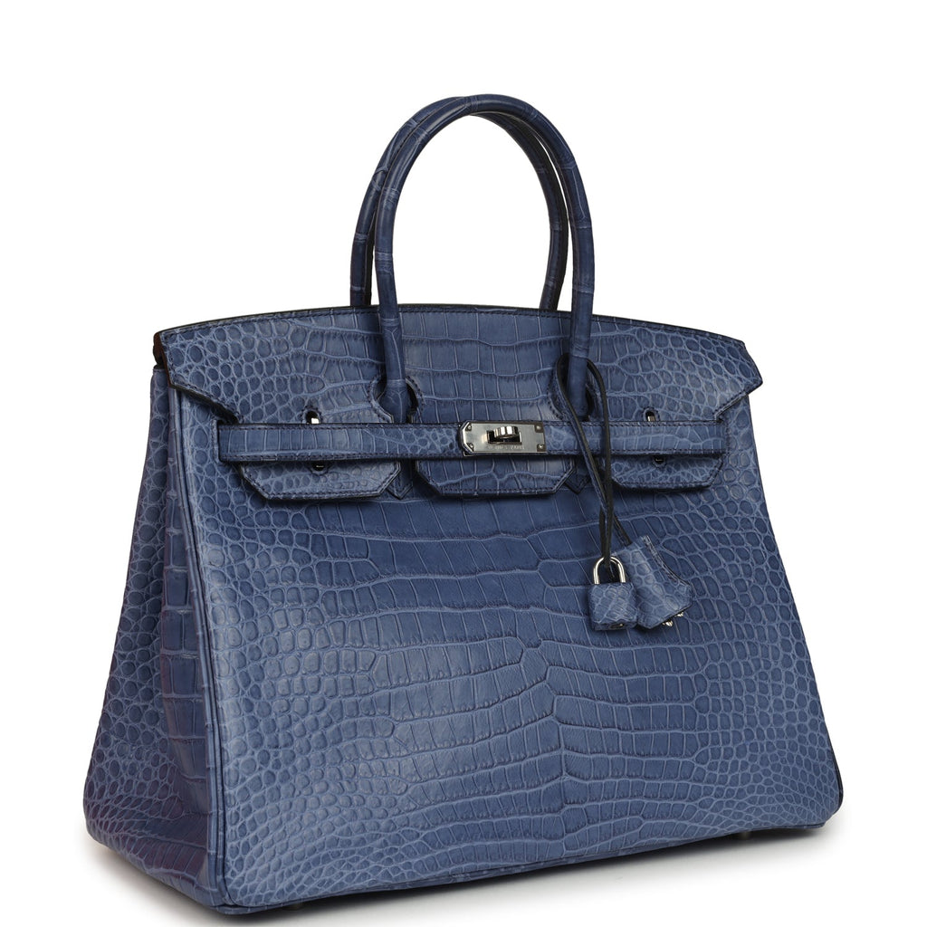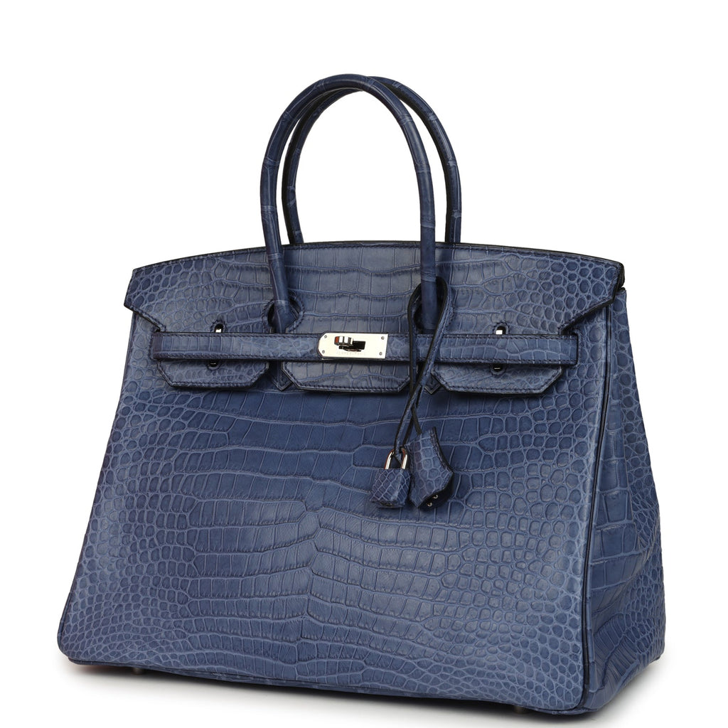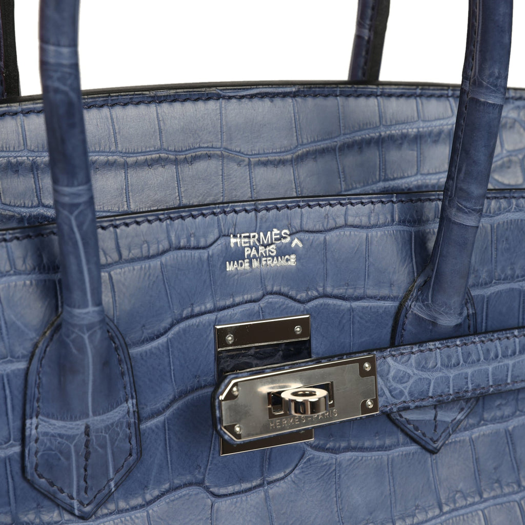 Pre-owned Hermes Birkin 35 Bleu Brighton Matte Porosus Crocodile Palladium Hardware