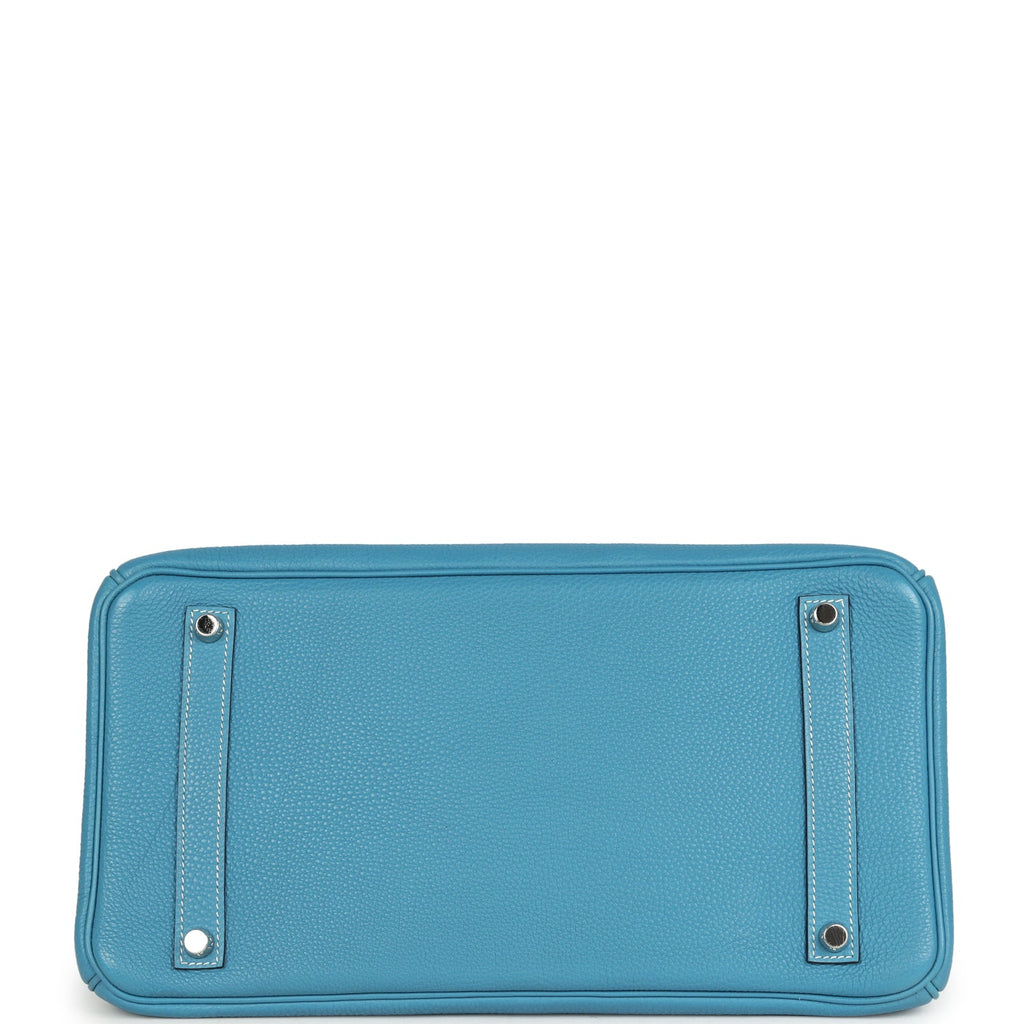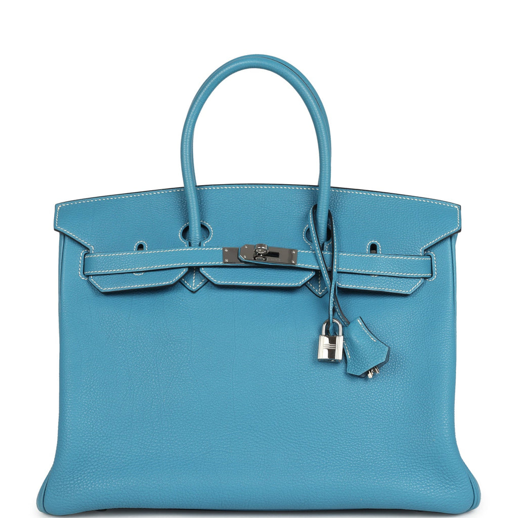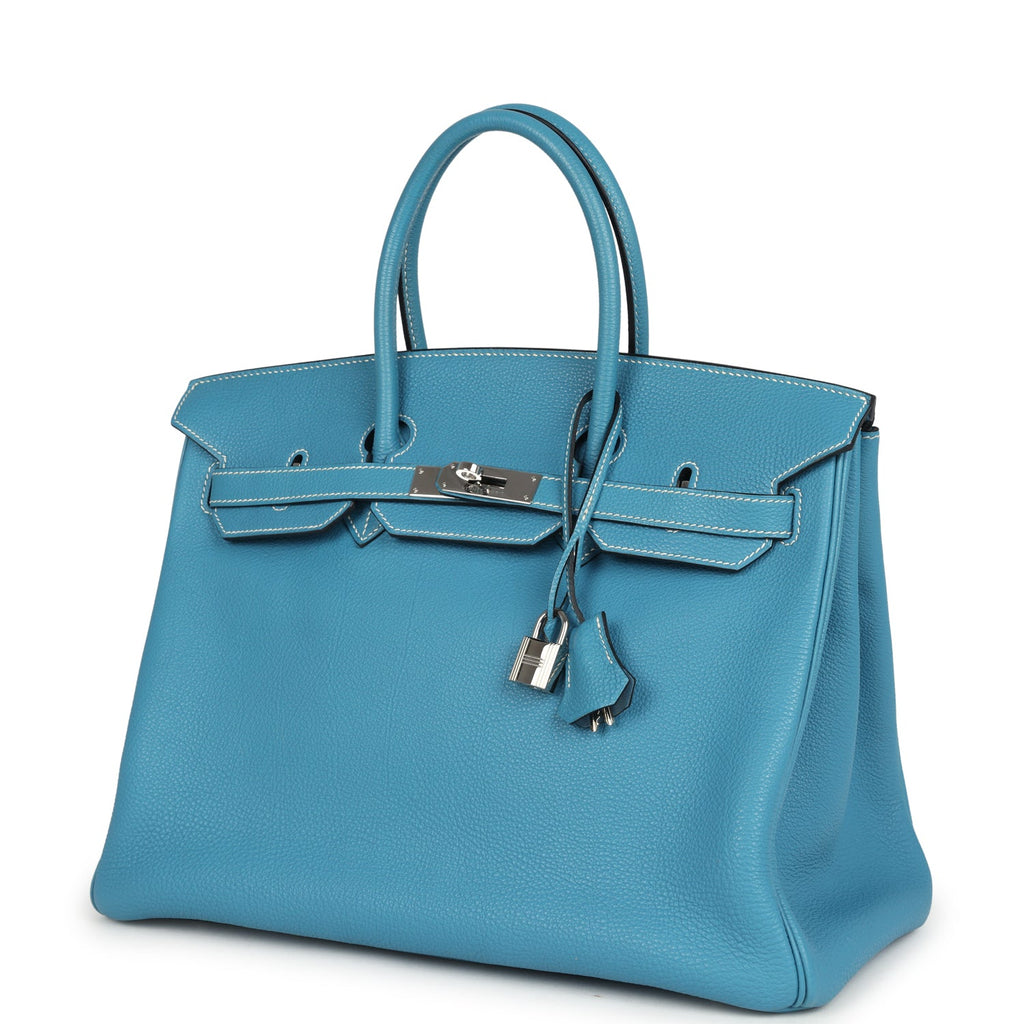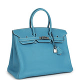 Pre-owned Hermes Birkin 35 Blue Jean Togo Palladium Hardware